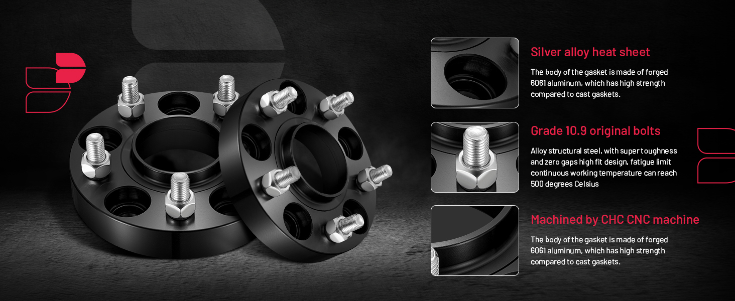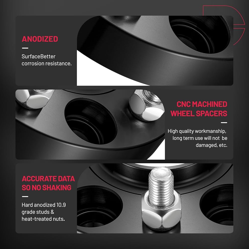 ميزات فاصل العجلة Hubcentric: من أجل سلامة القيادة الخاصة بك، نواصل التحسين، باستخدام تزوير الألومنيوم 6061 للطيران، وقولبة CNC المتكاملة، والسطح من خلال معالجة الأكسدة الأنودية، لضمان الدقة ومقاومة التآكل، ومسامير فئة 10.9؛ جميع فواصل العجلات BDFHYK معتمدة من نظام الجودة IATF 16949:2016