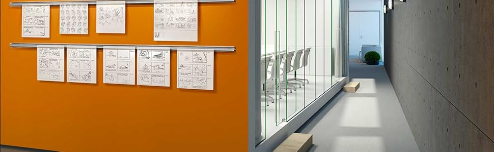 HASSLE FREE DISPLAY: With no need for tape, tacks, or pushpins, this display rail makes it quick and easy to showcase important documents and artwork.