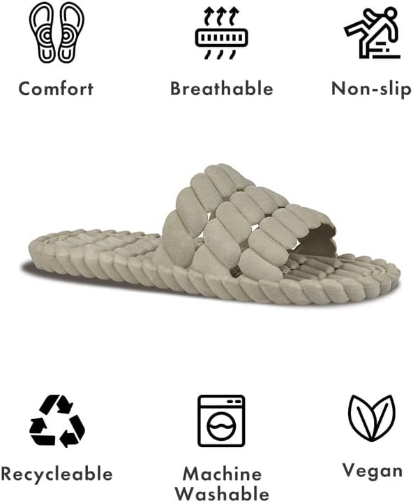 خفيف الوزن وجيد التهوية: مع فتحات تصريف تسمح بتدفق الماء بسرعة. يمكن غسل هذه الأحذية المنزلقة في الغسالة، وهي مريحة وصحية. يمكنها منع الرطوبة الموجودة في الحمام من دخول الغرف الأخرى، ولا تنتج رائحة أو بكتيريا، وتحافظ على بيئة منزلك نظيفة ومرتبة.