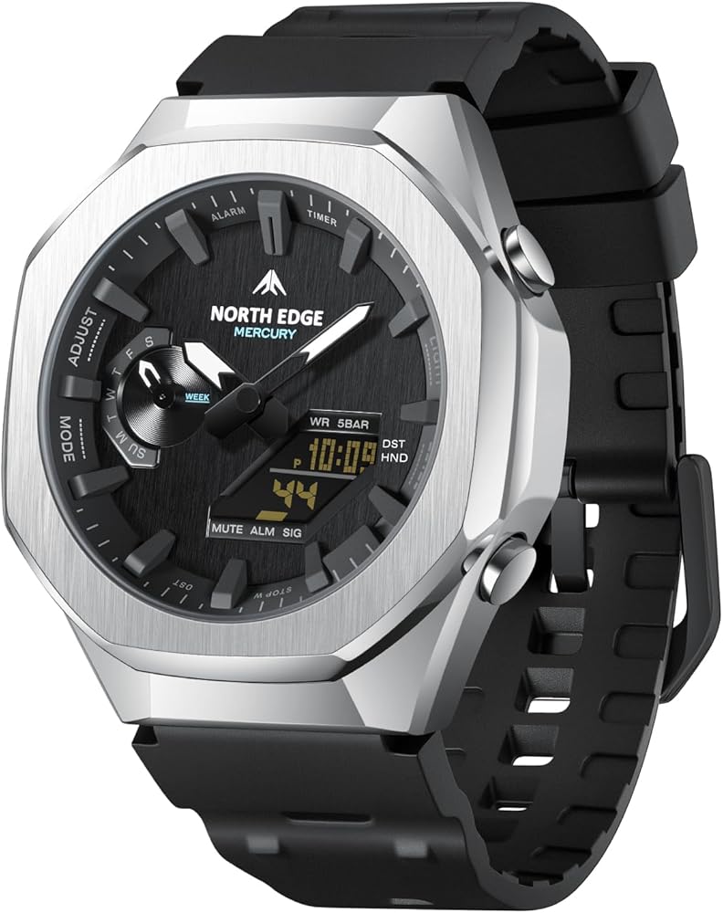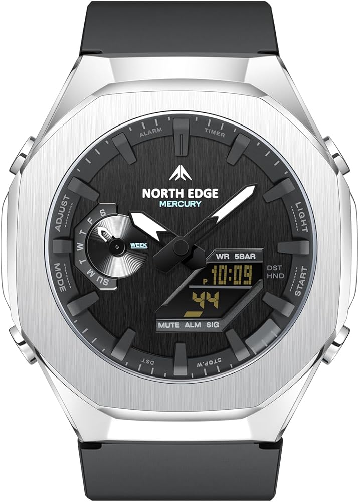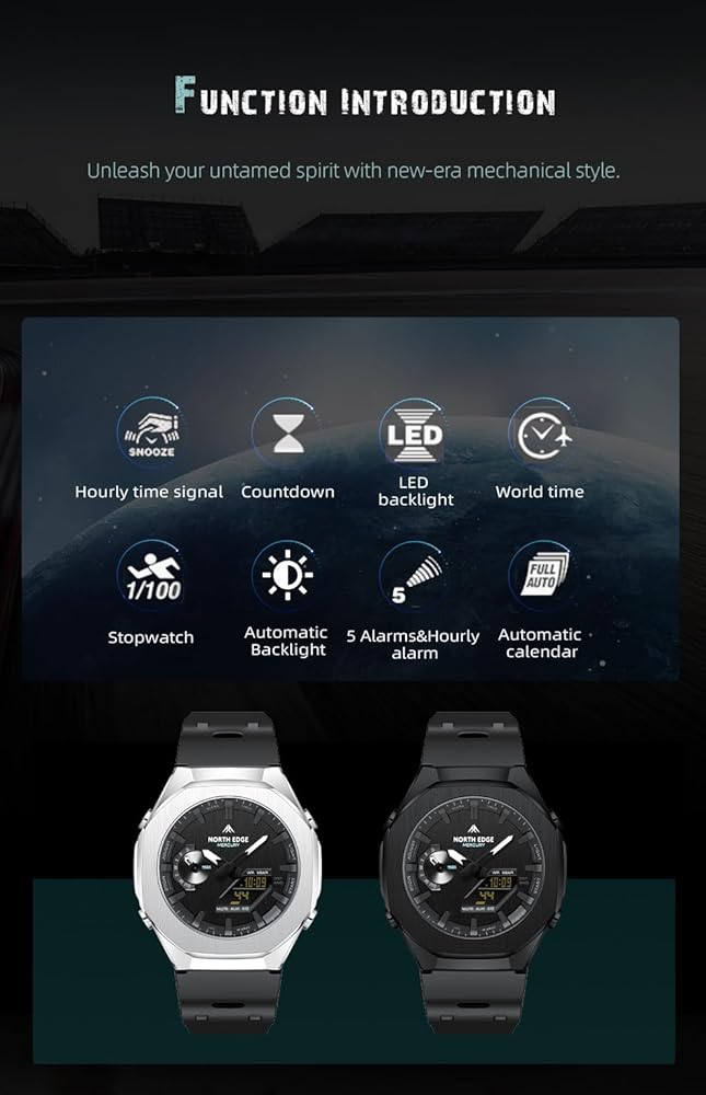 ساعة نورث ايدج ميركوري الرياضية الرقمية للرجال مقاومة للماء في الهواء الطلق مع التوقيت العالمي، ساعة إيقاف، العد التنازلي، 5 منبهات، تقويم تلقائي، إضاءة خلفية LED، ساعة لياقة بدنية متعددة الوظائف للسفر والجري