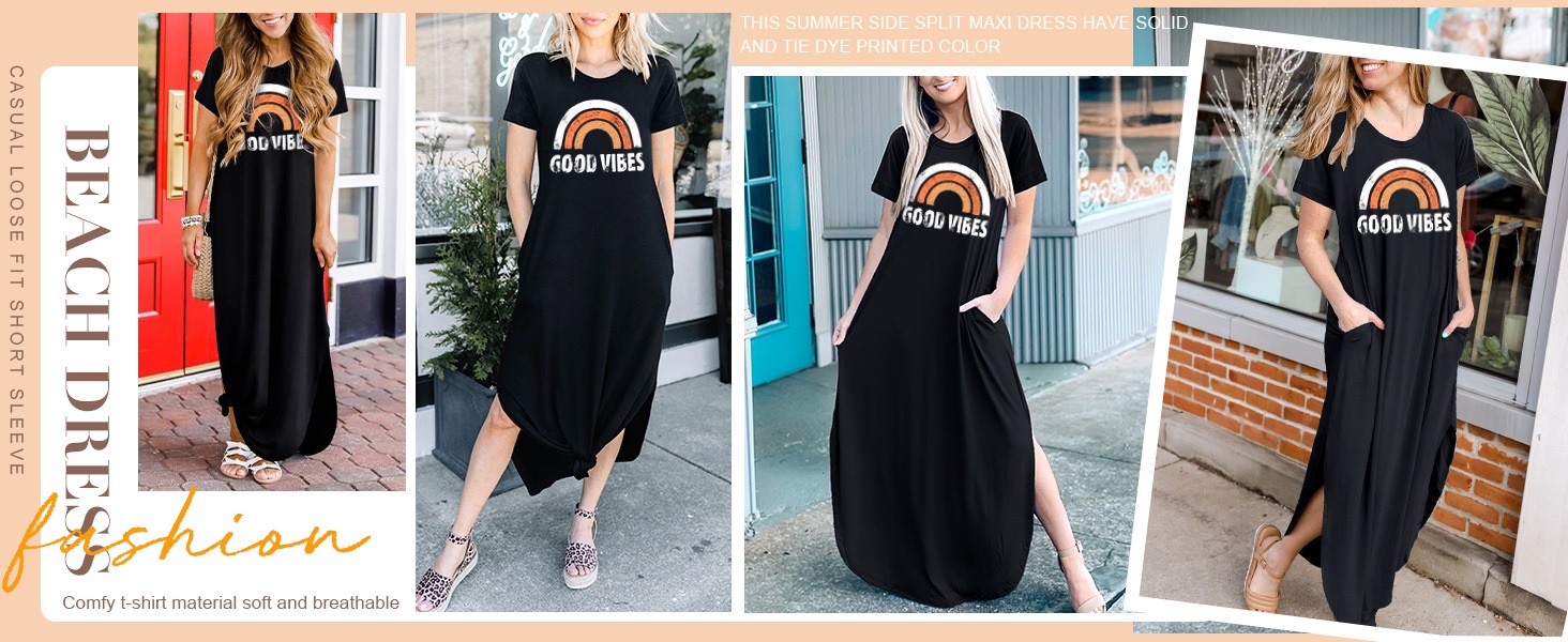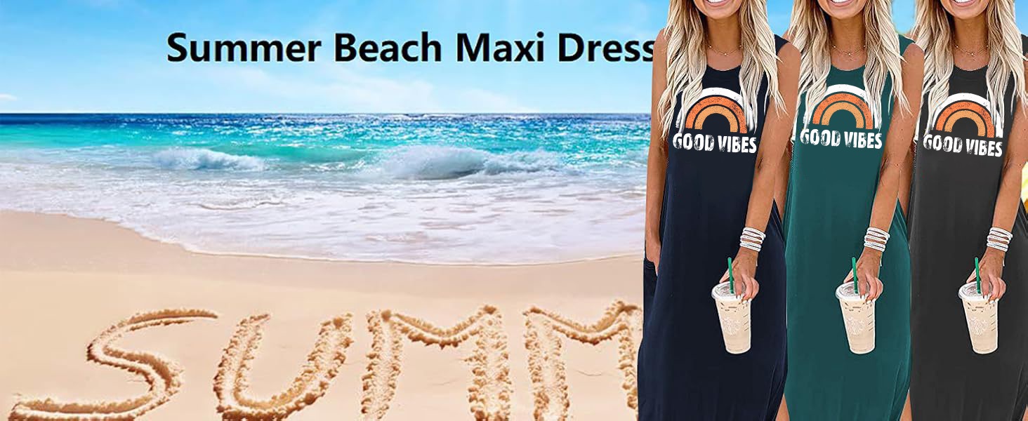 • 【ميزات فستان Sunshine Maxi 】: بدون أكمام، رقبة دائرية، فستان طويل، فتحة جانبية، جيوب جانبية، فستان شاطئ صيفي، فستان سادة، فستان مصبوغ برباط، فستان مطبوع، مقاس فضفاض، فستان طويل كاجوال، رقبة دائرية، حاشية غير منتظمة، فستان طويل بجيوب. فستان صيفي كاجوال فضفاض بجيب تي شيرت للنساء، أشعة الشمس، رسالة Good Vibes مطبوعة برسومات قوس قزح لطيفة، كاجوال جدًا، مثير وأنيق، فستان قصير قصير Good Vibes، فستان قوس قزح.