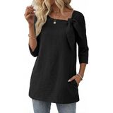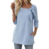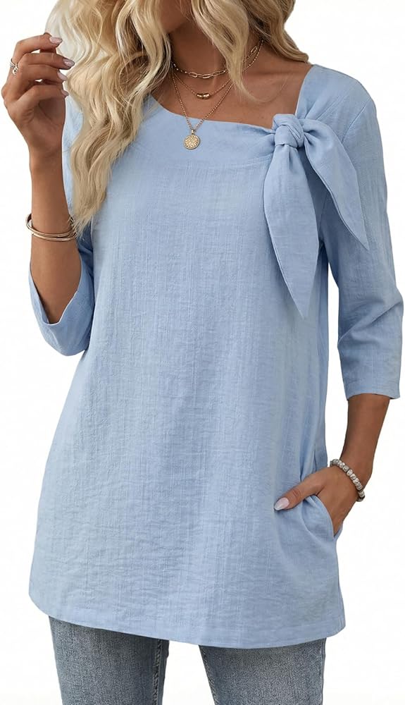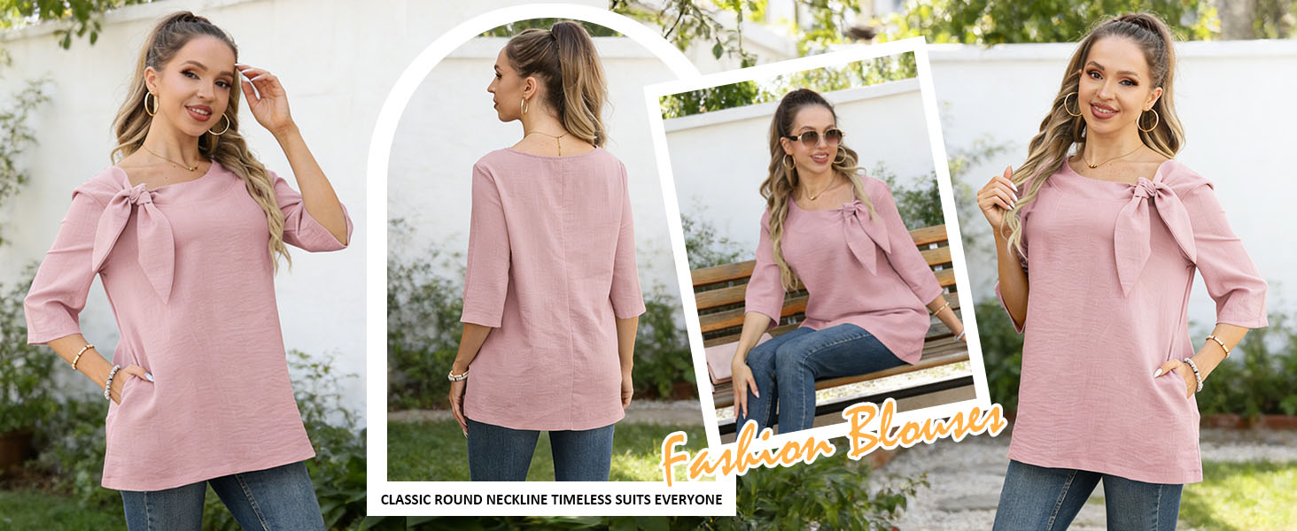 المزايا: مصمم بياقة على شكل فيونكة ساحرة وجيوب جانبية سهلة الاستخدام، هذا التونيك النسائي ذو الأكمام 3/4 يوفر ملاءمة مريحة تناسب كل شخصية. الرقبة المستديرة الكلاسيكية والقمصان النسائية ذات الأكمام الطويلة 3/4 بالإضافة إلى تصميم الحجم يجعلها أنيقة ومريحة.