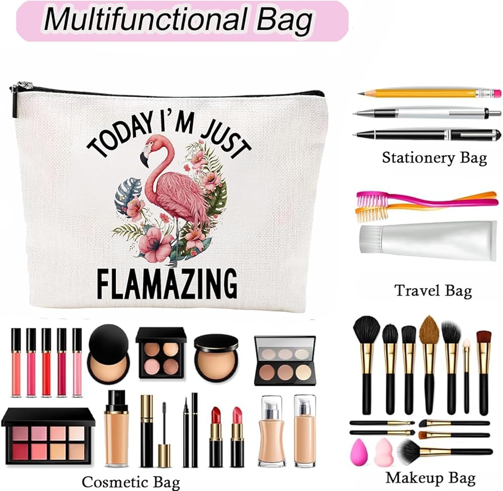 This charming gift set includes soft flamingo socks for all-day comfort, a waterproof makeup bag ideal for travel or daily use, an elegant beaded bracelet and matching flamingo keychain, and 50 unique flamingo stickers for decorating personal items.