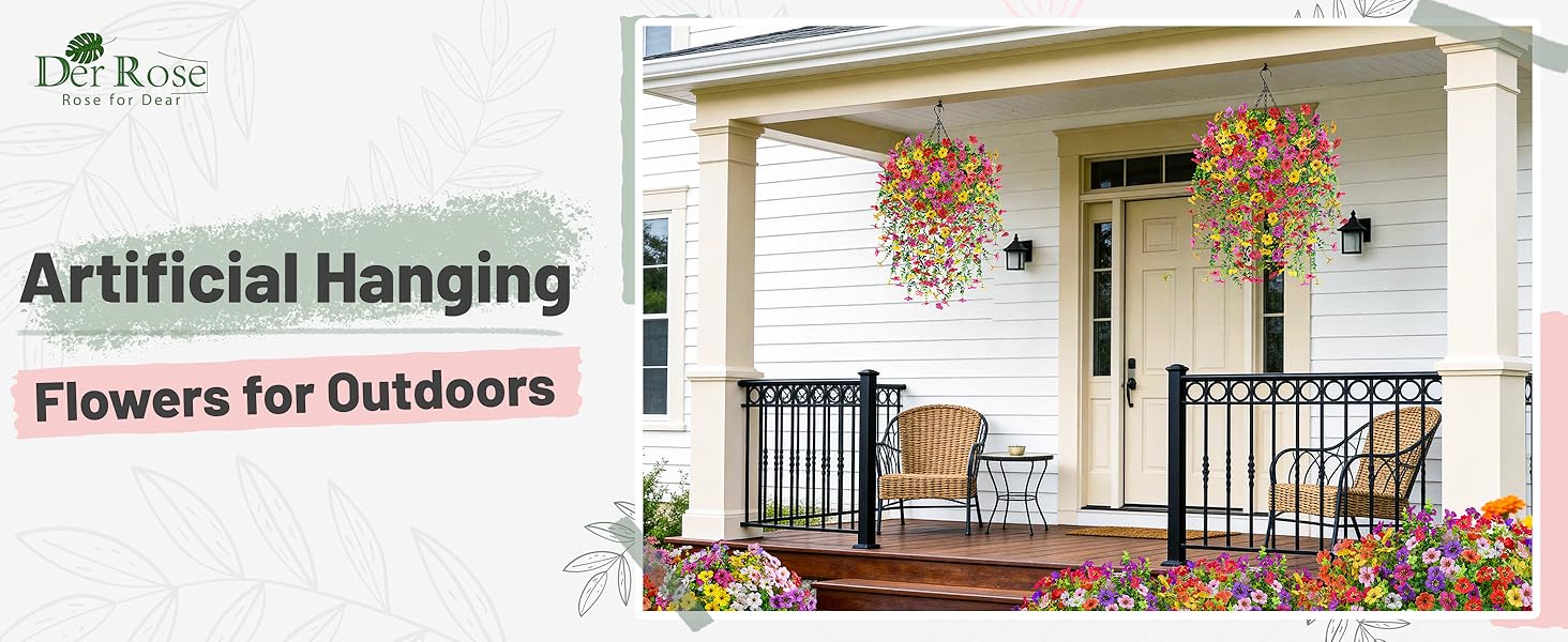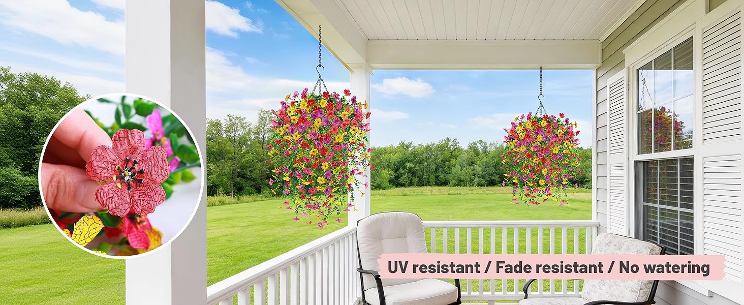 ديكور داخلي وخارجي: تضيف نباتاتنا الصناعية المعلقة في الهواء الطلق لونًا فوريًا في الداخل أو الخارج - بدون تربة أو سقاية أو تشذيب - مثالية للشرفة الأمامية أو الفناء أو الشرفة أو العريشة أو المدخل أو ديكور غرفة الشمس.