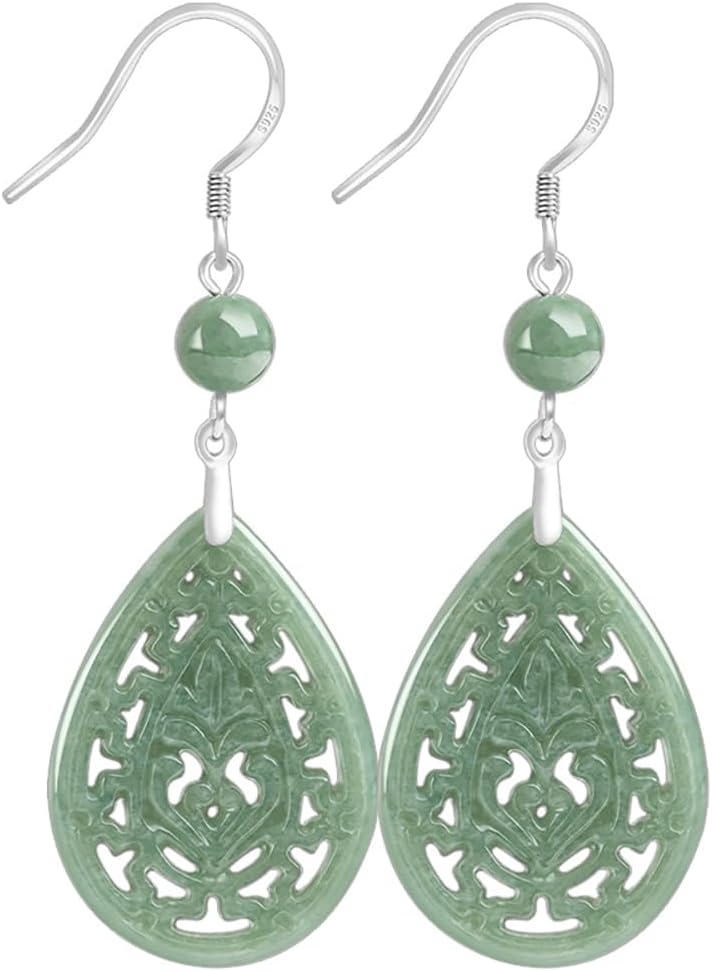 ❤ MATERIAL: Genuine natural jade earrings crafted with sterling silver S925 hooks and findings for lasting beauty and durability. Each jade stone is uniquely carved and polished to showcase its natural patterns and lustrous finish