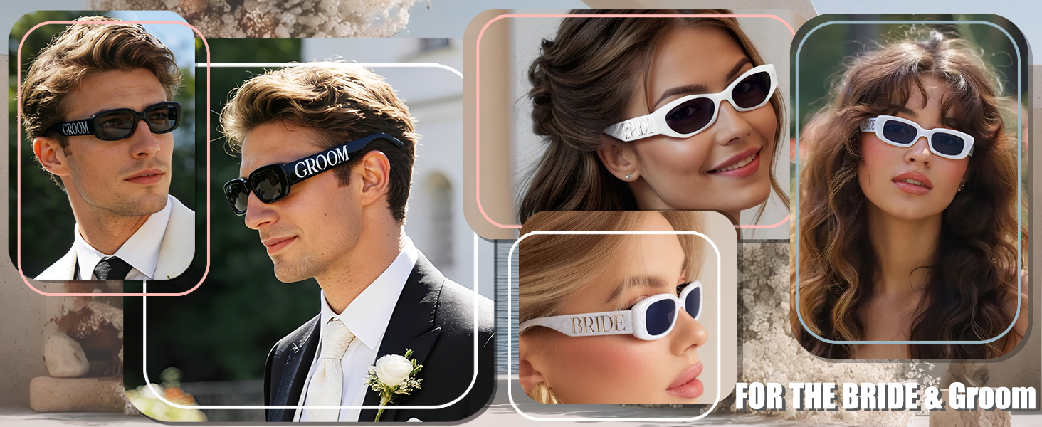 【نظارات شمسية للزفاف للحماية من الأشعة فوق البنفسجية】النظارات الشمسية للعروس والعريس جميعها تتمتع بحماية من الأشعة فوق البنفسجية. تتيح لك نظارات العروس والعريس الاستمتاع بحفلات الزفاف في الهواء الطلق وأنشطة حفلات توديع العزوبية مع تقليل أضرار أشعة الشمس على عينيك