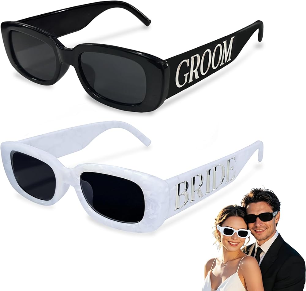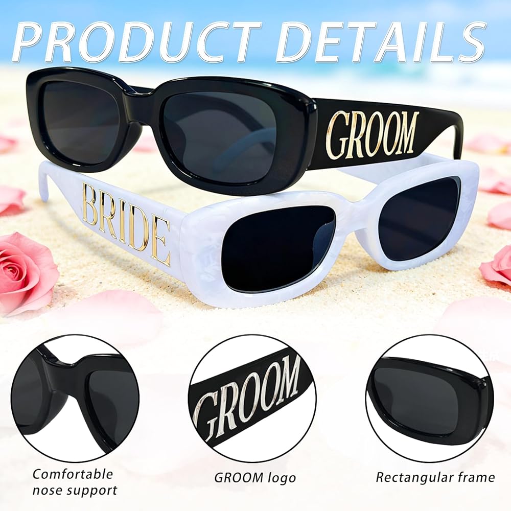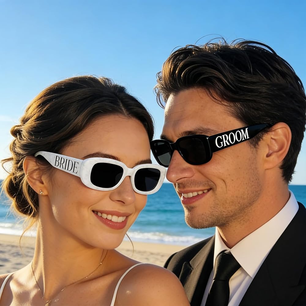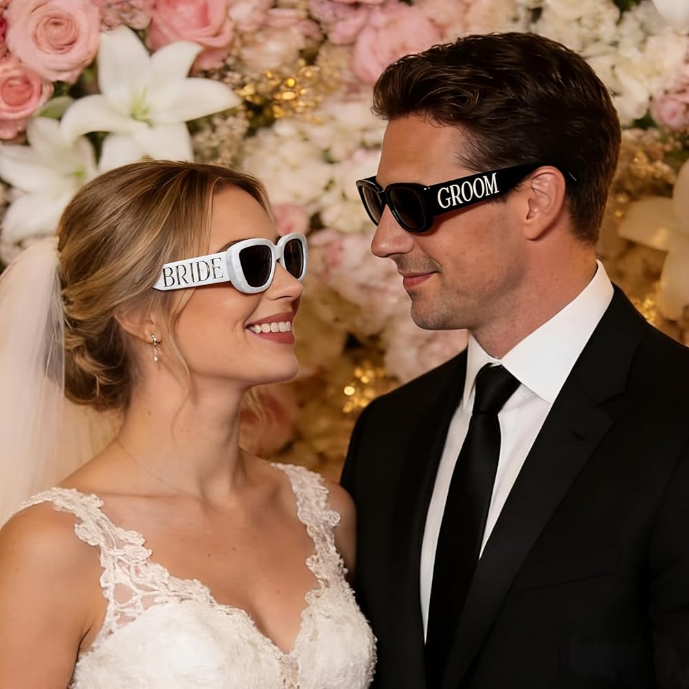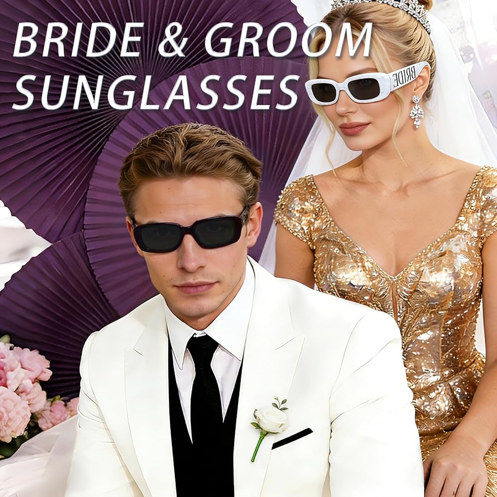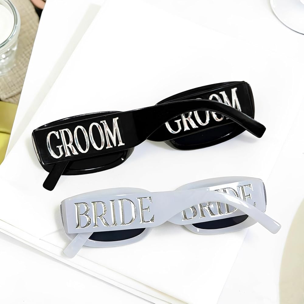 【معابد العريس للعروس】تعلن نظارات العريس والعروس الشمسية لحفلات الزفاف بوضوح عن حالة الزوجين المبهجة بزخارف "BRIDE" و"GROOM" - إعلان أنيق عن حبك ونذورك. نظارات شمسية مخصصة لحفلات الزفاف أو زي العروس والعريس