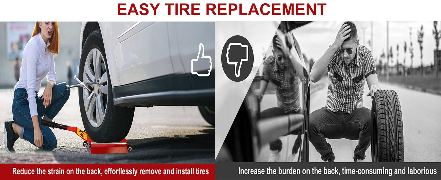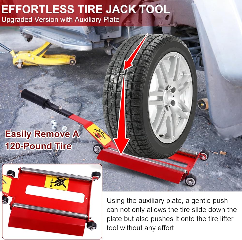 【استخدام واسع】تعمل أداة رفع الإطارات لدينا على تبسيط عملية إزالة الإطارات ونقلها لمختلف المركبات، مما يساعدك على تغيير الإطارات دون عناء في إعدادات متنوعة - الكراجات وحالات الطوارئ على الطريق ومحلات الإصلاح والمزيد. مناسبة للسيارات وسيارات الدفع الرباعي والشاحنات الكبيرة على الطرق الوعرة والحافلات المتنقلة والمركبات ذات مسامير العجلات والصواميل