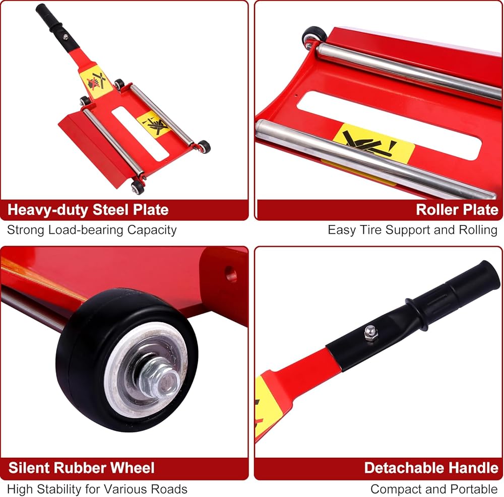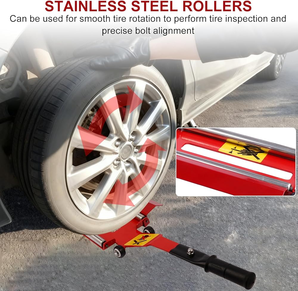 【رفع وتغيير الإطارات دون عناء】: يمكن لأداة رافعة الإطارات هذه أن تساعدك على رفع الإطارات الثقيلة بسهولة على العروات لإزالة الإطارات واستبدالها بسرعة. تسمح اللوحة الدوارة بدوران سلس للإطارات، مما يسهل المحاذاة الدقيقة للعجلات وفتحات البراغي، مما يجعل تركيب الإطارات أكثر كفاءة!