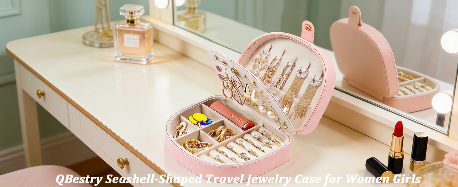 【حجم صغير محمول، ضروري للسفر】- حقيبة مجوهرات QBestry متوسطة الحجم محمولة على شكل صدفة أثناء التنقل، الحجم: 6.7 * 4.72 * 1.97 بوصة، تزن 0.55 رطل فقط. حقيبة حامل المجوهرات خفيفة الوزن وصغيرة الحجم للسفر تناسب بسهولة حقيبة اليد أو حقيبة السفر أو الأمتعة، وهي مثالية لرحلات نهاية الأسبوع أو سفر العمل أو التنقل اليومي. يجب أن يكون رفيق السفر للمجوهرات.
