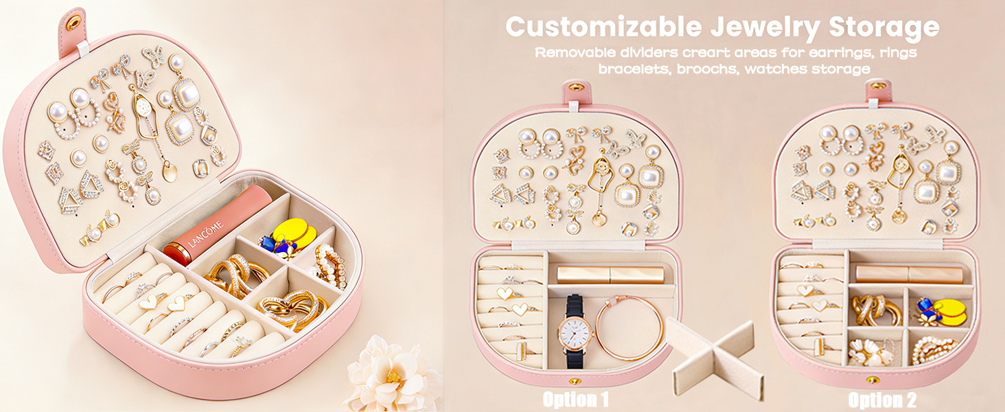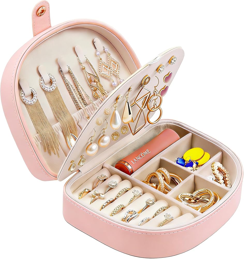 【هدية مثالية للسيدات】- صندوق المجوهرات بحجم السفر الخاص بنا معبأ في صندوق أنيق، منظم المجوهرات الصغير المحمول هذا للسفر هو هدية مدروسة وعملية للنساء والفتيات من جميع الأعمار. سواء كان في عيد الحب، أو عيد الأم، أو الكريسماس، أو أعياد الميلاد، أو الذكرى السنوية، أو العام الجديد أو كهدية لوصيفة العروس، فهي الهدية المثالية لصديقتك أو الزوجة أو الأم أو الجدة. كما أنها هدية تخرج عملية للابنة أو الأخت المعلمة أو زميلة الصف. إنه ليس مجرد صندوق تخزين مجوهرات صغير لطيف للسفر؛ إنها طريقة للحفاظ على تنظيمها الثمين.