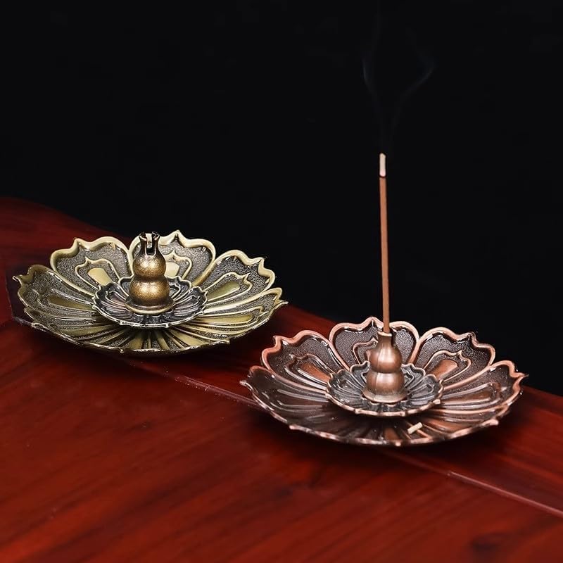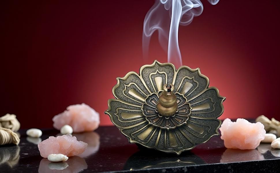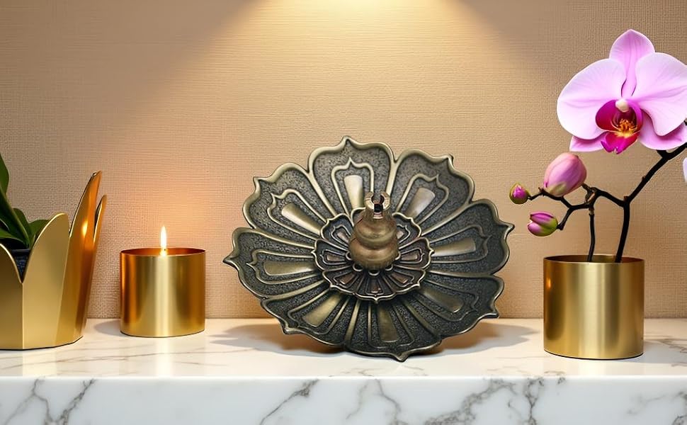 - تصميم أنيق: حامل بخور جميل على شكل زهرة اللوتس مصنوع بلمسة نهائية برونزية، مما يضيف لمسة من الأناقة الروحية إلى مساحة التأمل أو اليوغا الخاصة بك.