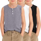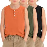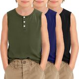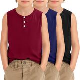 These boys' sleeveless tops has a thoughtful design. The 3 button placket at the neck makes dressing easy, especially for kids who dislike tight necklines.