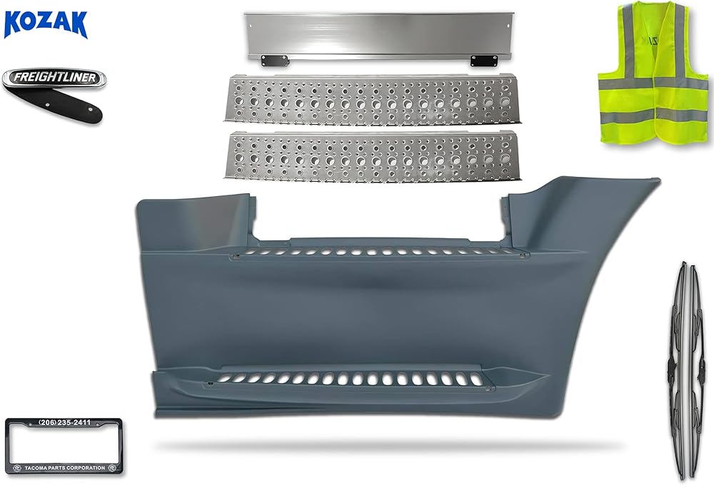 • تشتمل على خطوات انسيابية، وزخرفة للخطوة العلوية، وشعار شبكة Freightliner، وممسحة زجاج أمامي مقاس 2 × 22 بوصة، وإطار لوحة الترخيص وسترة KOZAK