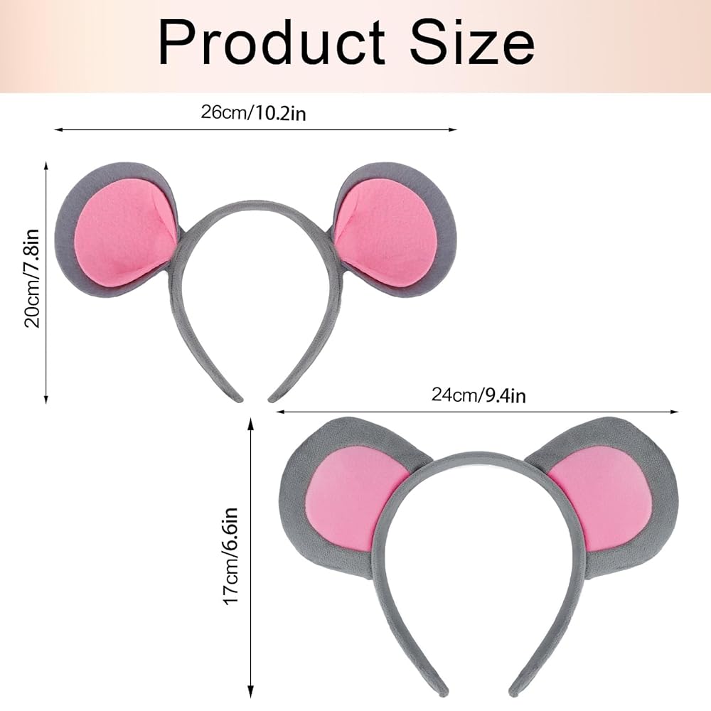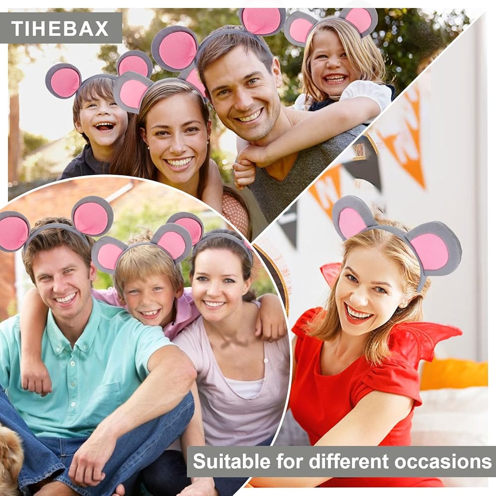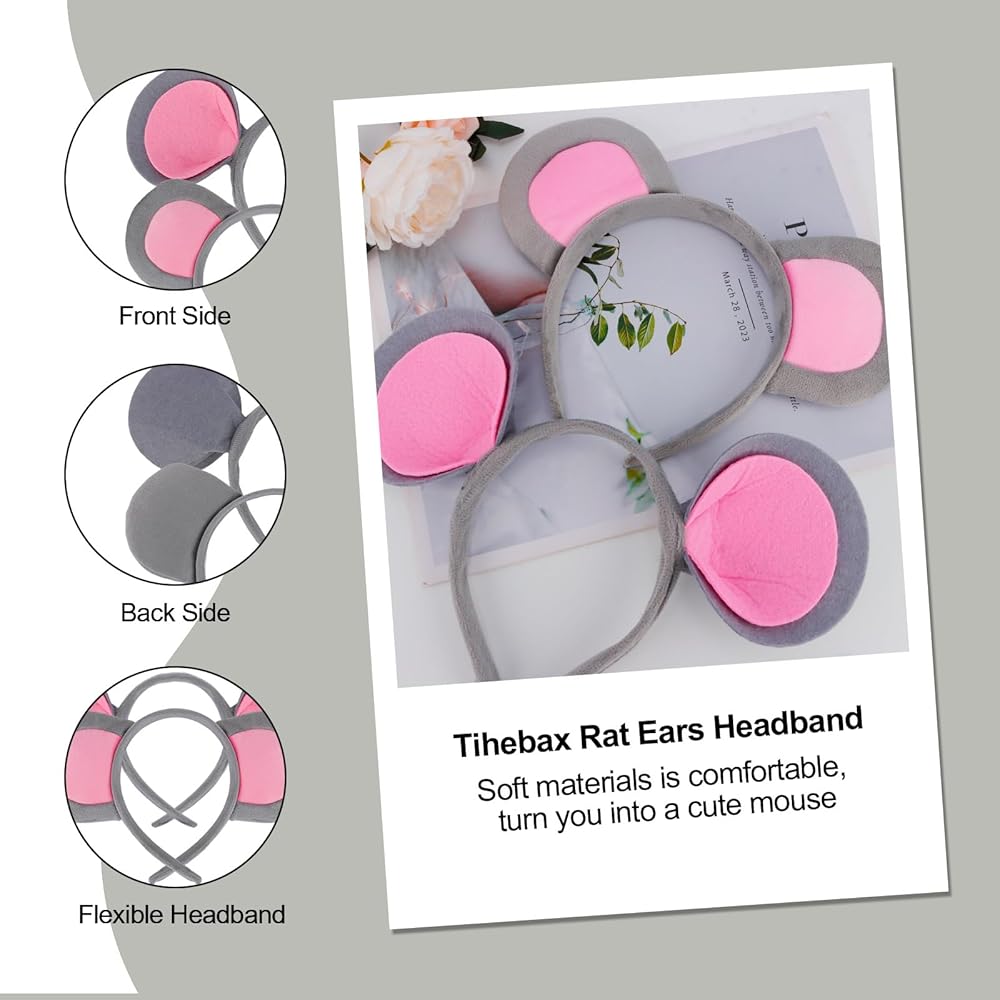 تصميم ساحر لآذان الفأر: تعرض عصابة رأس Tihebax لأذني الفأر تصميمًا رائعًا مزدوج الأذن بلون رمادي ناعم، مثالي للنساء والفتيات والكبار على حد سواء. إنها طريقة ممتعة وأنيقة لرفع مستوى أي ملابس