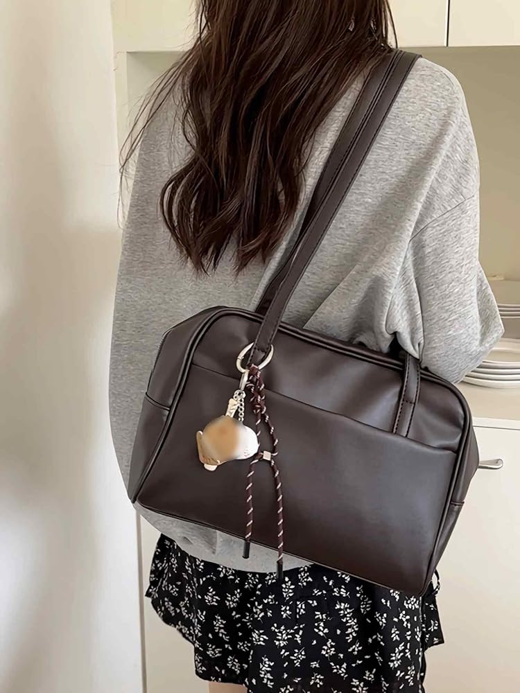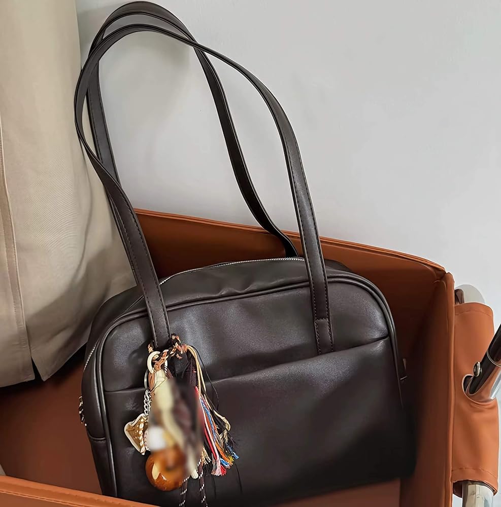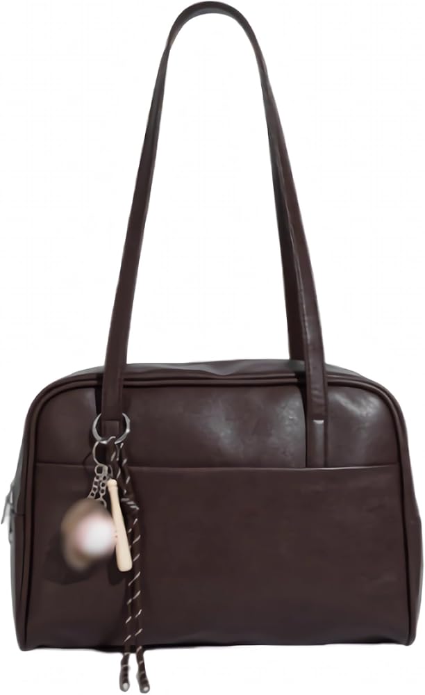 This stunning brown leather retro shoulder bag combines timeless style with modern functionality. Crafted from rich brown leather, this women's handbag features a classic silhouette that effortlessly complements both casual and dressy outfits. The structured design provides ample space for your daily essentials while maintaining an elegant profile. Dual shoulder straps offer comfortable carrying options, whether you're heading to the office or out for a weekend brunch. The bag showcases thoughtful details including multiple zippered compartments for organized storage, ensuring your belongings stay secure and easily accessible. A charming decorative charm adds a playful touch to the sophisticated design. The retro-inspired aesthetic makes this shoulder bag a versatile accessory that never goes out of style, perfect for the woman who appreciates quality craftsmanship and vintage-inspired fashion.