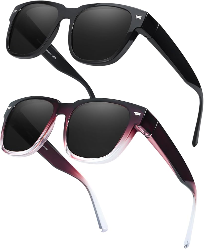 Sunglasses Fit Over Glasses 2PCS: Engineered to accommodate daily eyewear, these sunglasses over glasses women slide seamlessly over existing frames (W<149mm, H<47mm). They can be worn by non-glasses wearers, ensuring convenience and versatility for all populations.