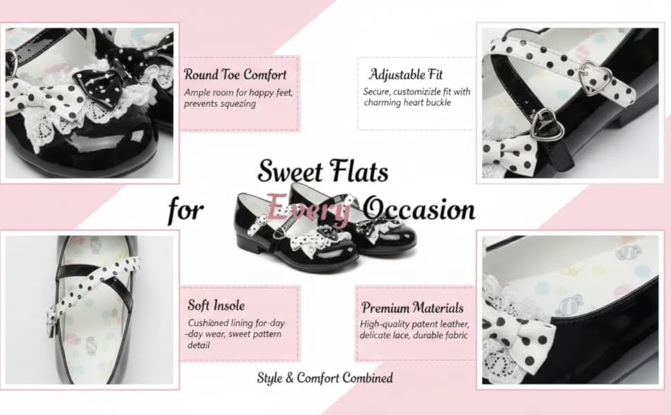 👠 نعل مسطح مريح للارتداء طوال اليوم - مصمم بنعل مسطح ناعم ومرن يسهل المشي فيه، مما يجعل هذه الأحذية مثالية للمدرسة أو الحفلات أو عطلات نهاية الأسبوع غير الرسمية.