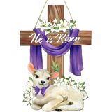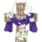 • تصميم فريد: علامة عيد الفصح عبارة عن صليب بتصميم زهرة الزنبق والأغنام ونص "He is Risen". إنها زخرفة باب كلاسيكية لإحياء ذكرى يسوع