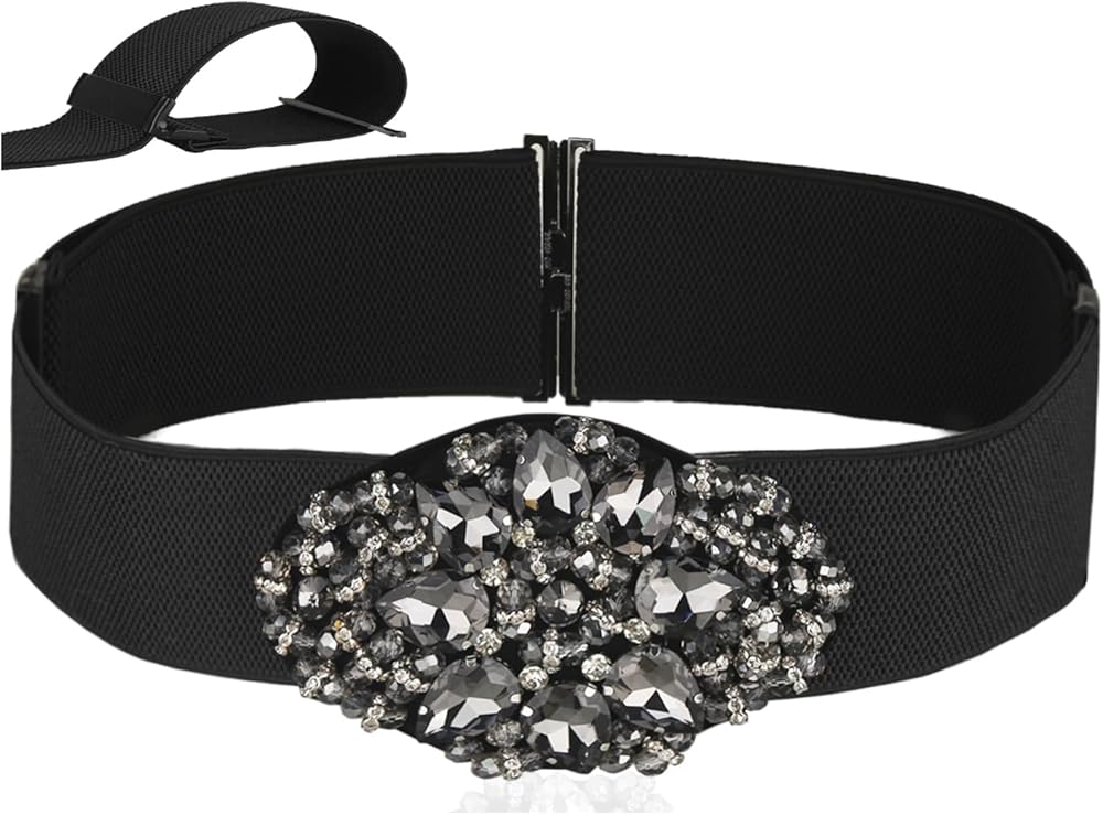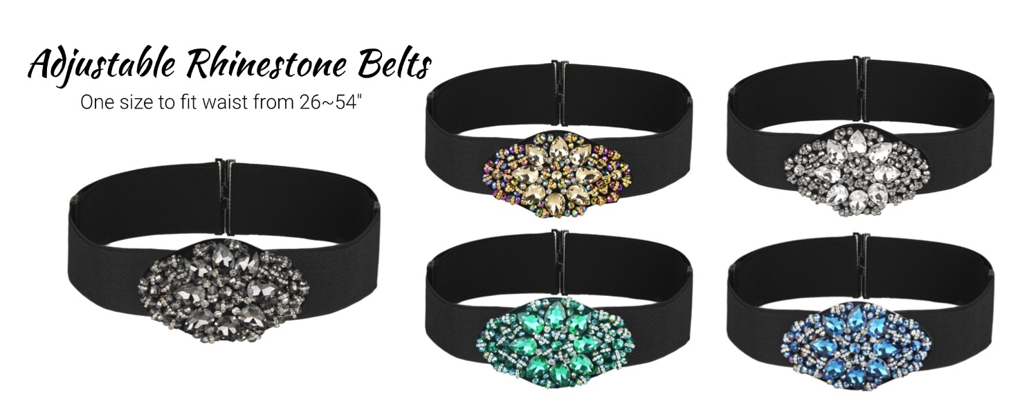 مقاس قابل للتعديل: هذا الحزام بمقاس واحد يناسب الخصر من 66 سم إلى 137 سم. يحتوي على شريطين قابلين للتعديل موزعين على جانبي الإبزيم المصنوع من حجر الراين عن طريق التمدد والتعديل المناسب، مما يسمح لهذا الحزام المرن بتشكيل جسمك بشكل مثالي.