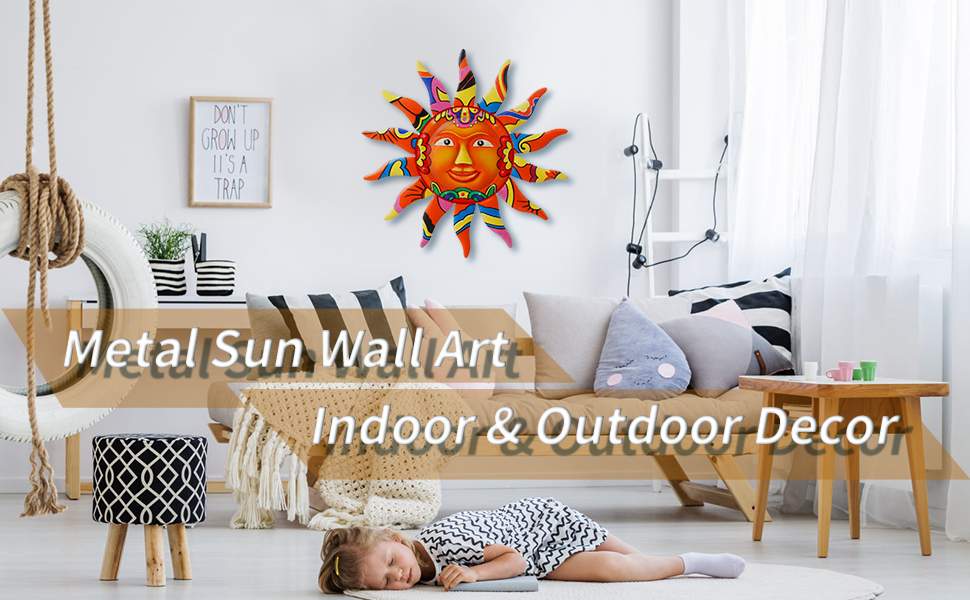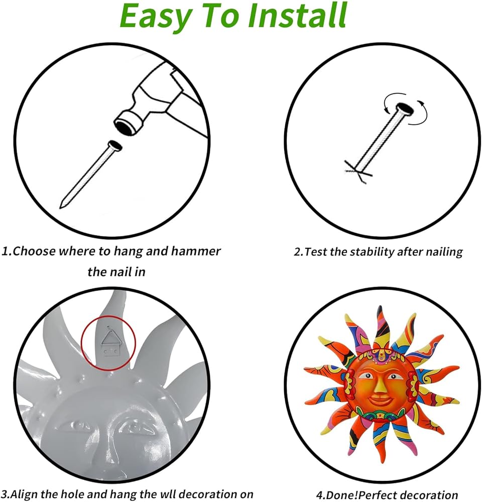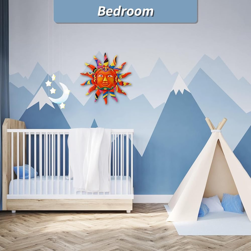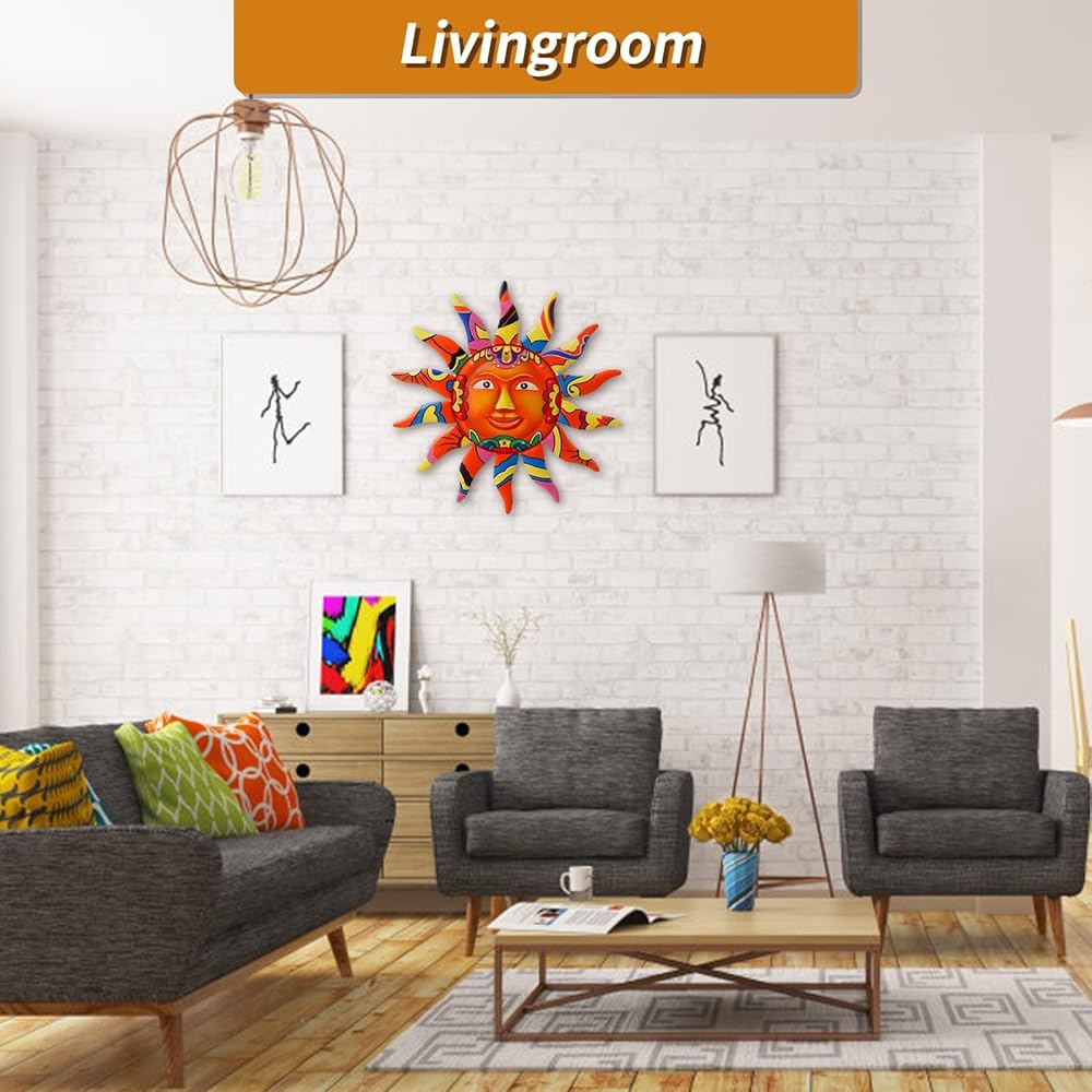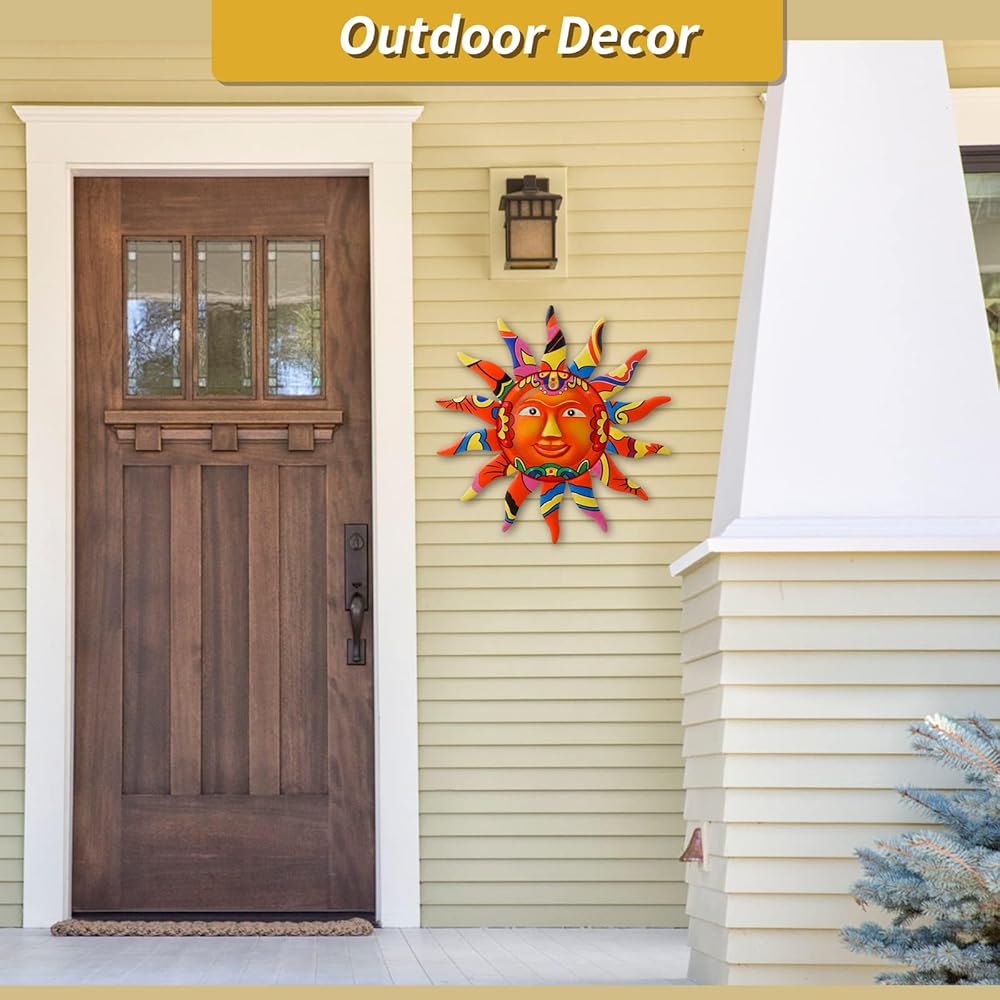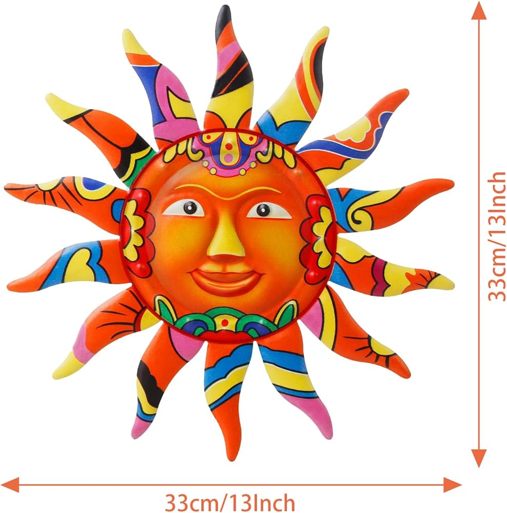 • جودة عالية: مصنوع من معدن متين مطلي بطبقة شفافة، مما يجعله مقاومًا للطقس، مما يجعله مميزًا حقًا. ديكور فني جداري على شكل وجه الشمس فريد من نوعه، ولون لافت للنظر، وأسلوب مشرق ومبهج