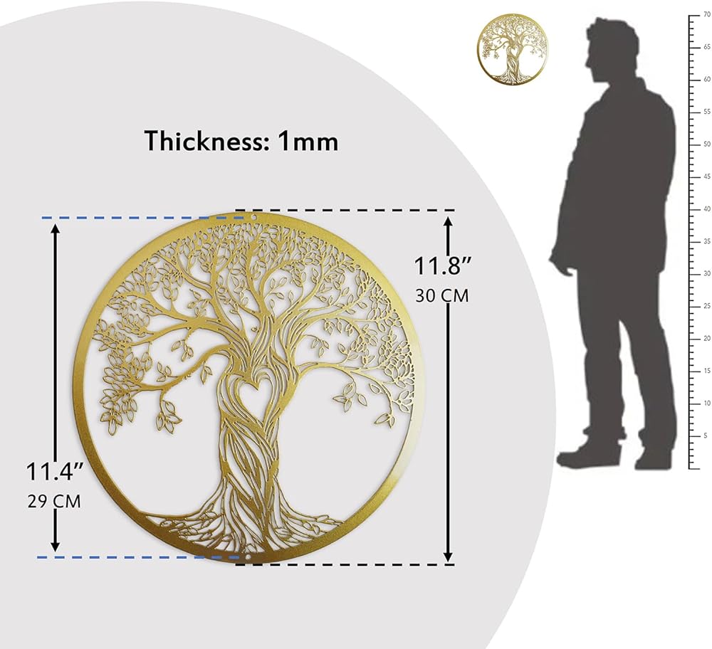 2.Crafted with precision, our Metal Wall Decor features a laser-cut design of a magnificent Tree of Life. The intricate details and rustic black finish add a unique charm to this 12-inch wall hanging.