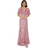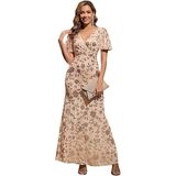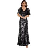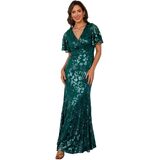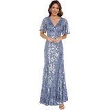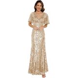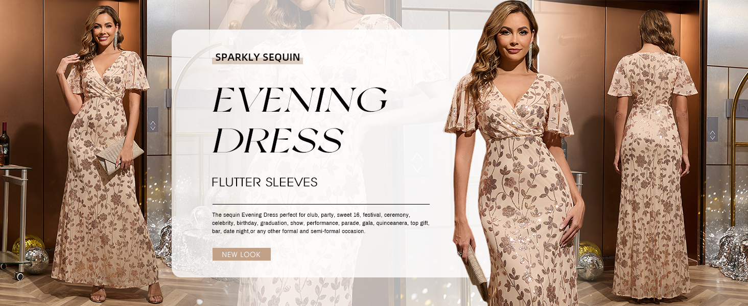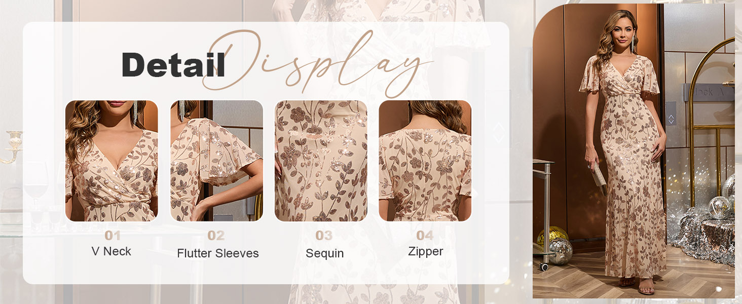 Features:Sequin Flutter Sleeves A Line Mother Of The Bride Dress for women,V Neck Evening Party Dress,Lace Up Back,Full Lined, Floor Length,Built in Bra