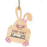 Make Easter gifting extra special with this adorable Bunny Money wooden holder. Designed as a playful Easter bunny peeking over a sign, this piece offers a charming way to present cash or gift cards while doubling as festive Easter decor. Crafted from natural wood and finished with soft pastel accents, the layered design adds depth and personality without overwhelming your decor. The built-in slot makes it easy to slide in folded bills or gift cards, creating a memorable and fun Easter surprise. Perfect for Easter baskets, tabletop displays, or seasonal shelf decor, this bunny money holder is a delightful alternative to traditional cards or envelopes. Whether you're gifting kids, family members, or friends, it's a keepsake they'll enjoy long after Easter is over.