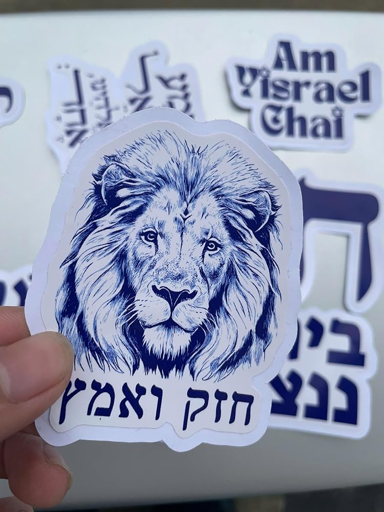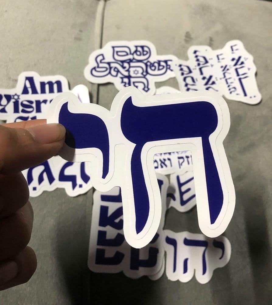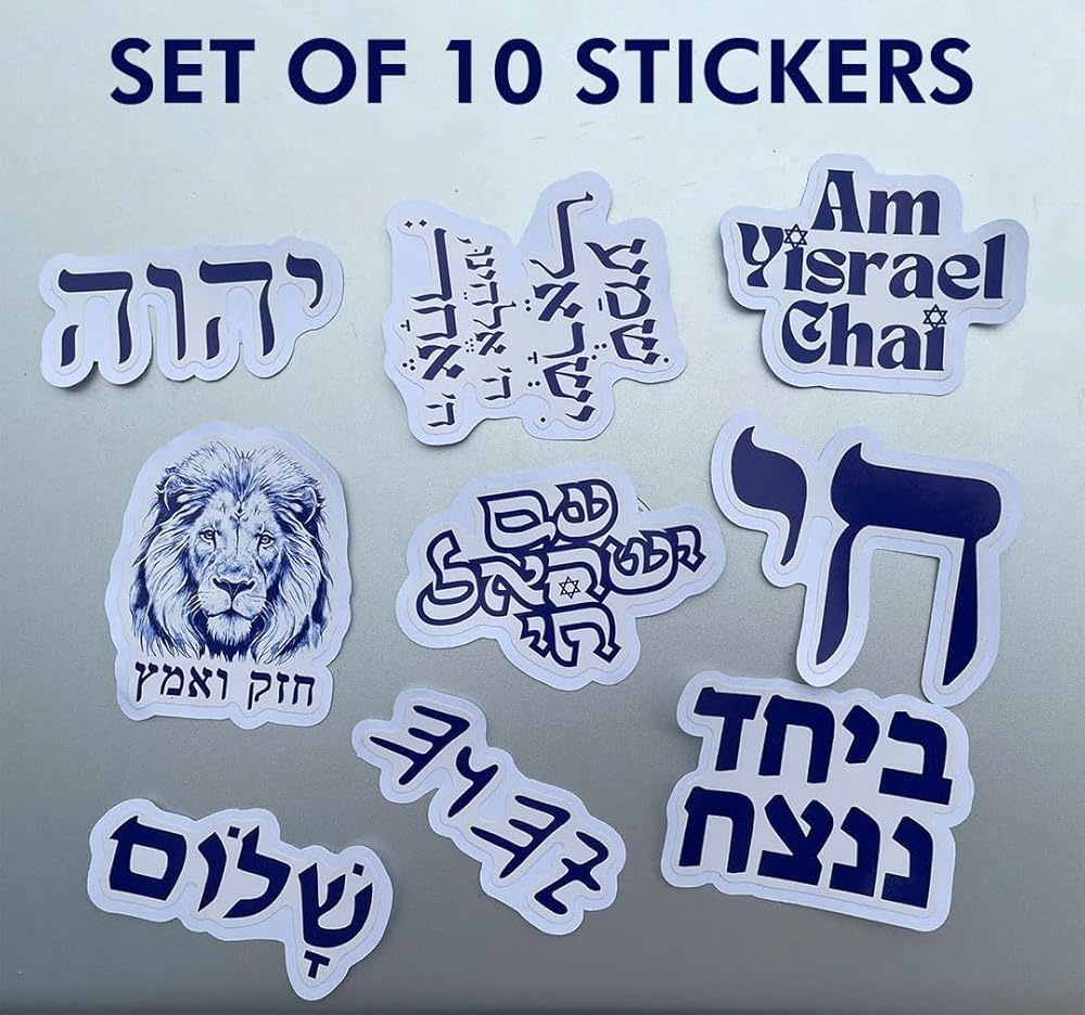 الحجم والنمط: يتميز كل ملصق بحروف عبرية نظيفة واحترافية وتصميمات فنية بحدود بيضاء لمظهر مذهل