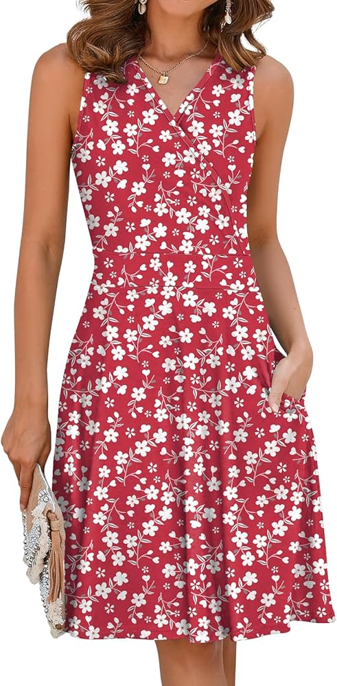 - المزايا: بدون أكمام، ملفوف صناعي، رقبة على شكل حرف V، فستان بطباعة زهور، أرجوحة، طول فوق الركبة، فستان بجيوب، نمط كاجوال.