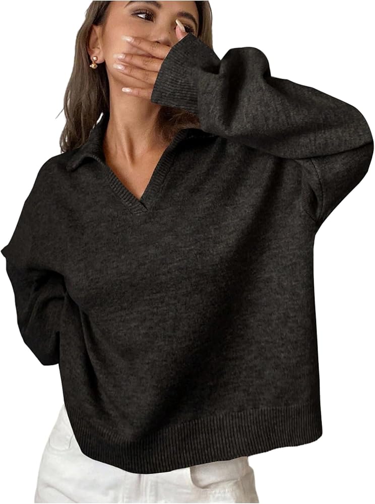 • Old Money Clothes, Business Casual Tops, Smart Casual Outfits, Soft Sweaters, Elegant Pullover Sweaters, Drop Shoulder, Long Sleeve, Collared Neck, Loose Fit