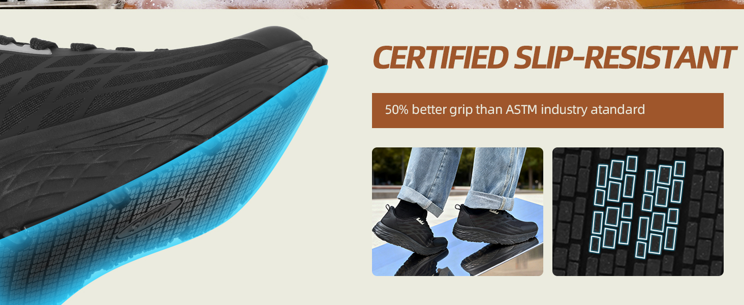 حماية فائقة من الانزلاق: تعامل بثقة مع الأرضيات الرطبة والدهنية والدهنية في المطاعم أو المطابخ أو المستشفيات. يوفر النعل الخارجي المطاطي المتقدم احتكاكًا فائقًا، مما يمنحك راحة البال