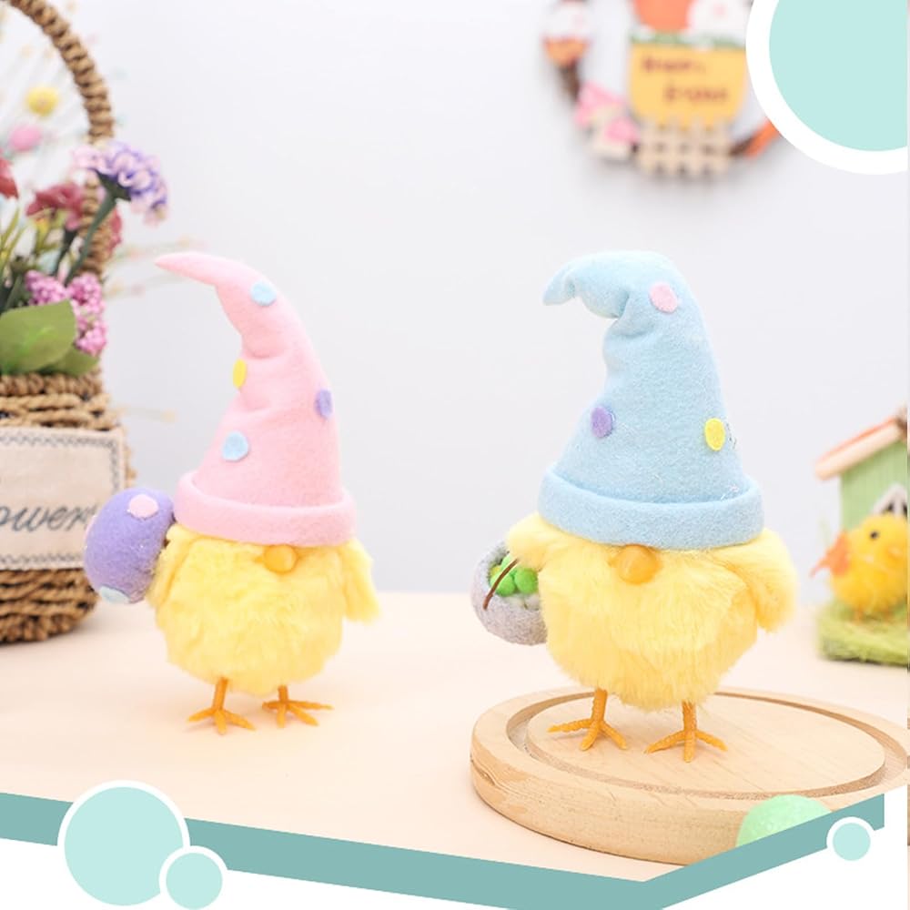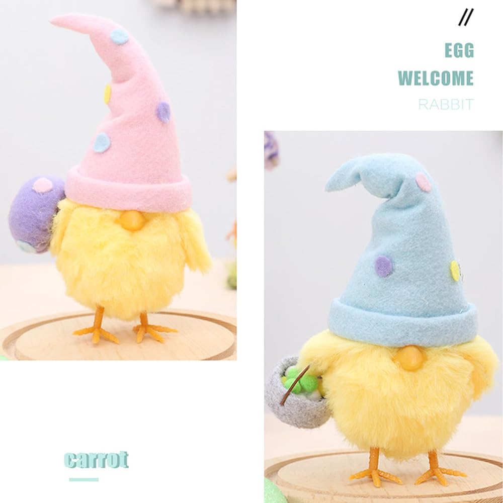 Add a whimsical touch to your Easter celebrations with this charming plush chick figurine. Standing at 6.8 x 4.5 x 3.2 inches, this adorable decoration features a soft, yellow plush body topped with a playful polka-dotted hat in pastel pink. The figurine includes delightful details like orange feet and a purple decorative egg accent, making it a perfect addition to your holiday decor. The cozy, soft-touch fabric creates a welcoming presence whether displayed on dining tables, shelves, or as part of a larger Easter arrangement. This versatile decoration works beautifully for multiple occasions beyond Easter, including baby showers, birthday celebrations, and as a thoughtful housewarming gift. Each figurine comes ready to enhance your space with its cheerful presence and can be incorporated into fairy gardens or dollhouse displays. The carefully crafted design combines classic charm with contemporary style, making it an Instagram-worthy addition to your holiday decorations.