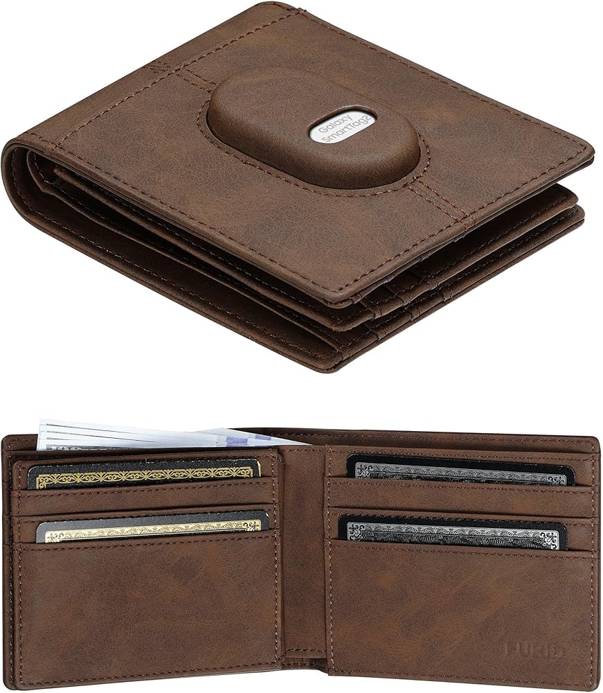 محفظة جلدية لهاتف Samsung Galaxy SmartTag2: محفظة للرجال رفيعة للغاية متوافقة مع علامة تعقب Samsung - محفظة ثنائية الطي تحجب RFID مع نافذة لبطاقة الهوية