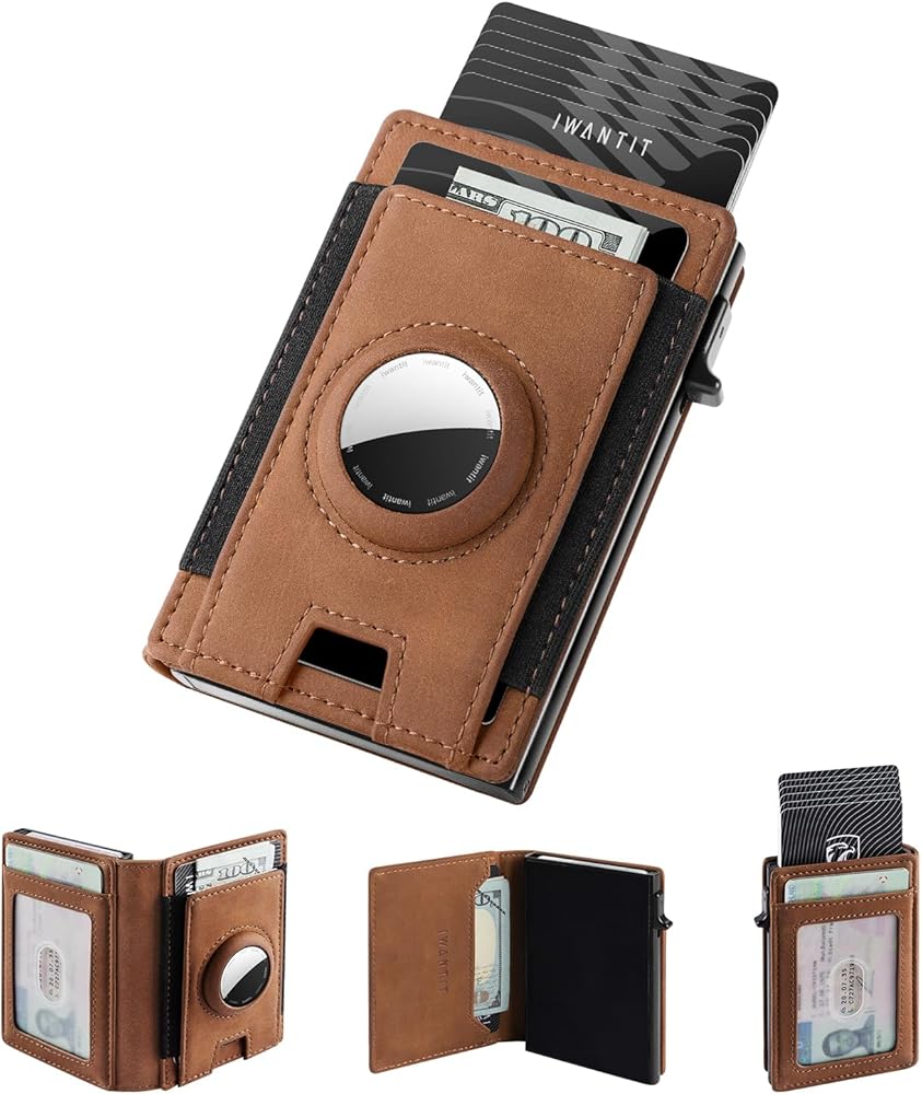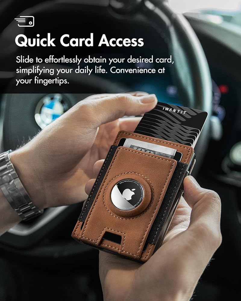 محفظة iwantit Slim AirTag للرجال، محفظة رجالية بسيطة مع جيب بحزام مطاطي، حامل بطاقة الائتمان، حجب RFID، محفظة Apple Air Tag، محفظة ذكية ثنائية الطي لأكثر من 10 بطاقات | نافذة الهوية