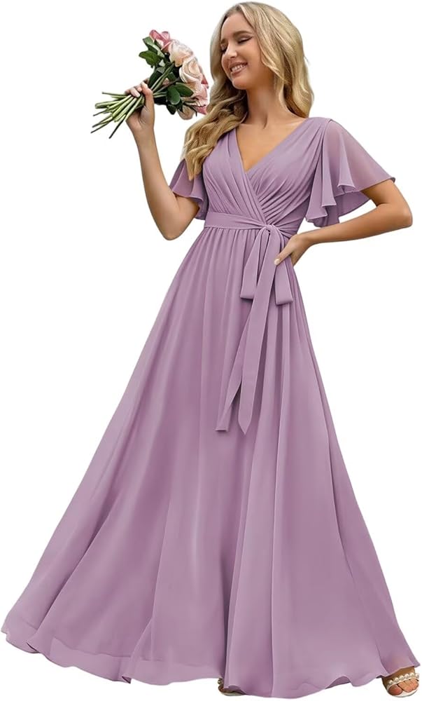 • المزايا: فساتين وصيفة العروس برقبة على شكل حرف V طويلة مع فيونكة 2026، فستان شيفون رسمي للحفلات المسائية، فستان شيفون مشد للنساء، فستان ضيوف زفاف مكشكش للنساء، فساتين رسمية بأكمام مكشكشة مع ثنيات، فستان وصيفة العروس بخصر إمبراطوري للنساء، فستان سهرة للمناسبات الرسمية، فستان شيفون طويل بكشكشة بطول الأرض