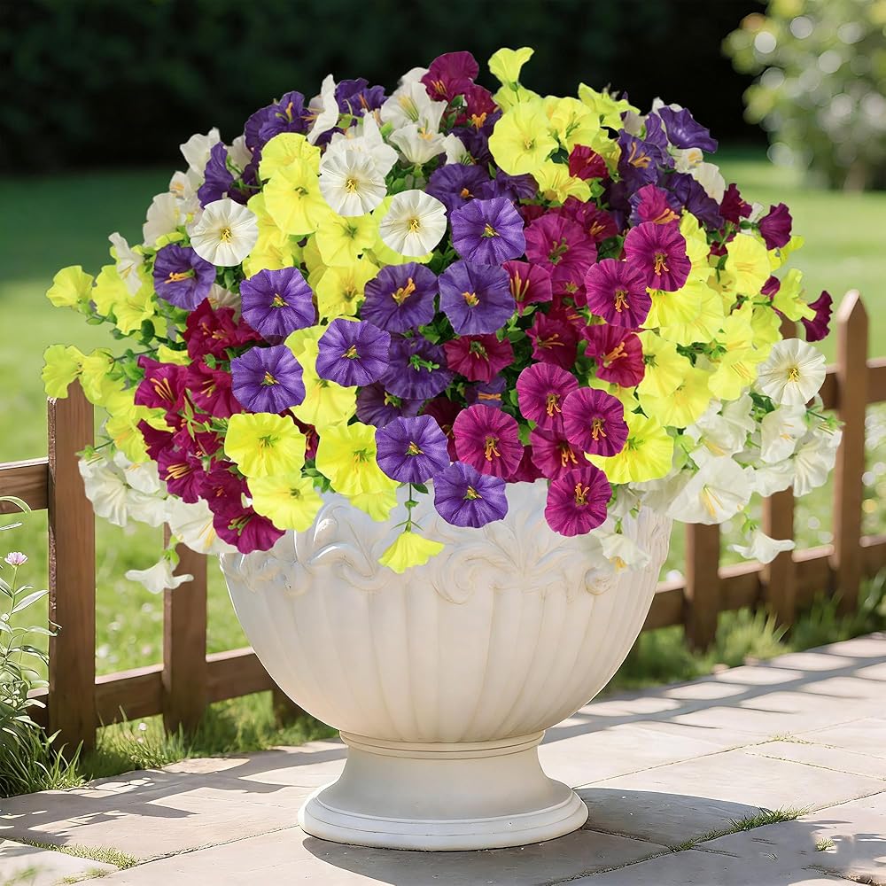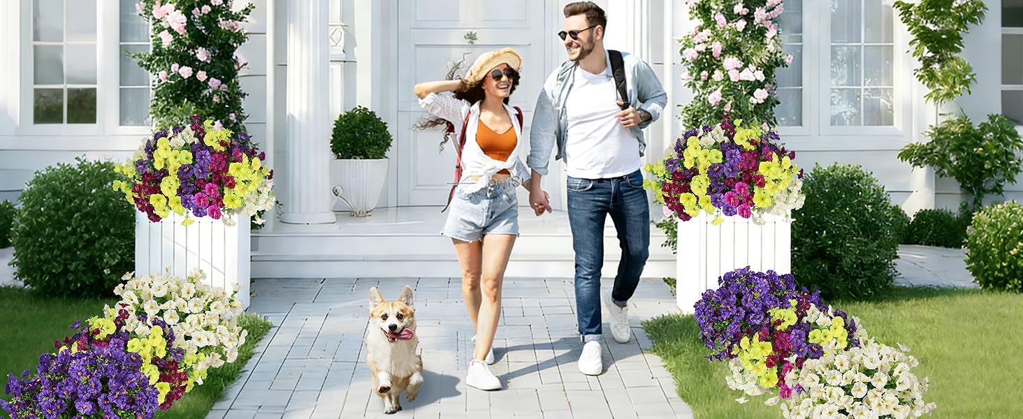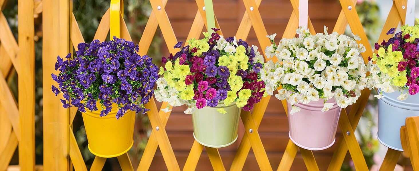 زهور وهمية واقعية: الزهور الاصطناعية في الهواء الطلق مصنوعة من البلاستيك عالي الجودة، كل زهرة تبدو واقعية بشكل لا يصدق، مع ملمس بتلات وأوراق الشجر الحقيقية. تتحمل زهور النباتات الاصطناعية هذه الشمس والمطر والرياح دون أن تفقد لونها النابض بالحياة.