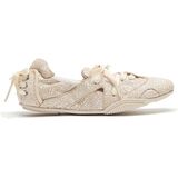 - تصميم الموضة: حذاء الباليه المسطح هذا مزيج من الدانتيل في الخلف مع قماش بني، وهو طراز أنيق للنساء الأنيقات