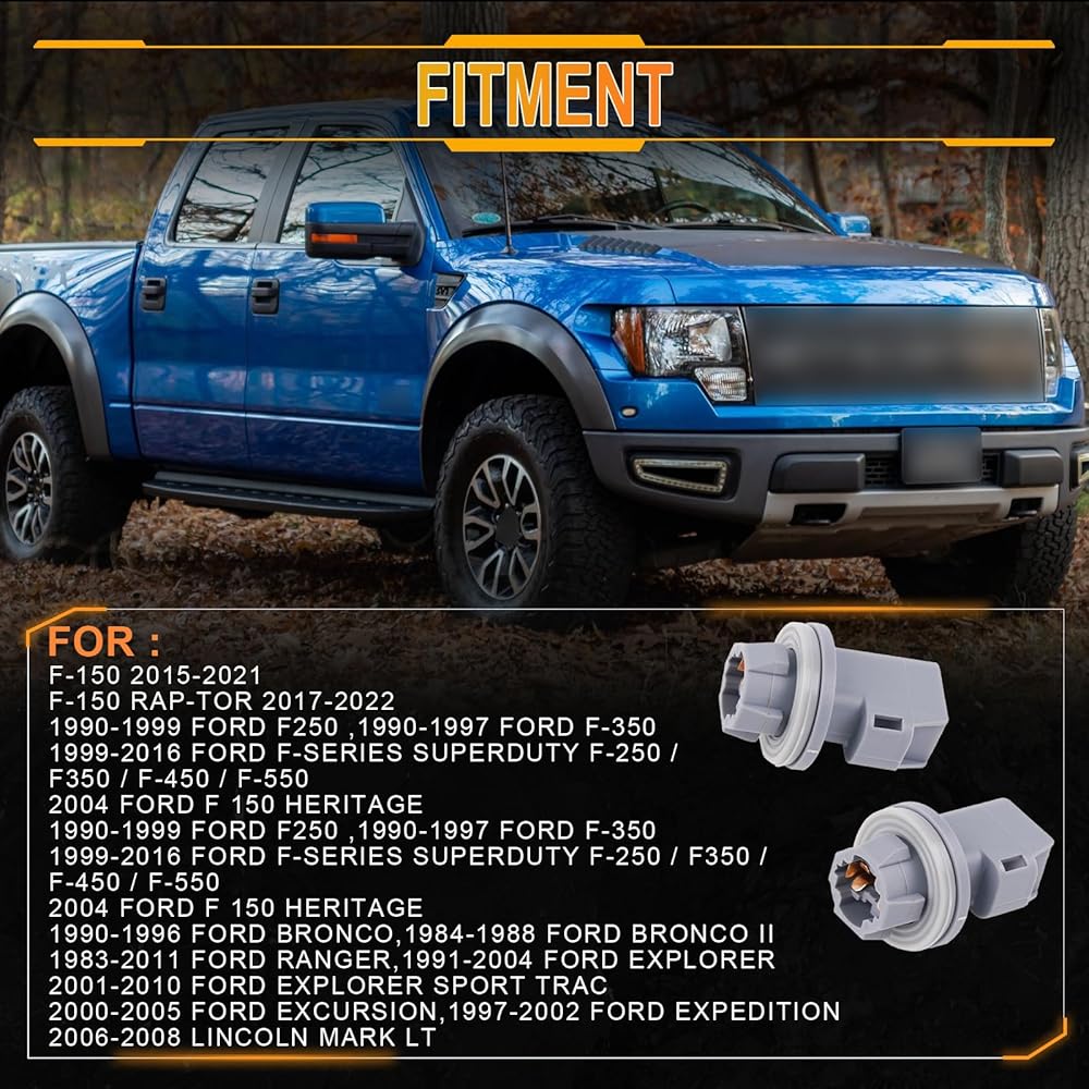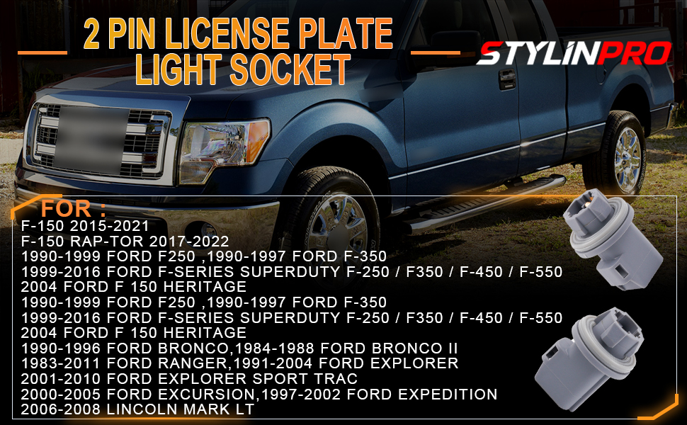 متوافق مع: مقبس إضاءة لوحة الترخيص ذو دبوسين متوافق مع Ford F-150 1990-2021، F-250 | F-350 1990-1999، F-150 هيريتيدج 2004، F-150 راب تور 2017-2022، 1999-2016 فورد F-Series Superduty F-250 / F350 / F-450 / F-550، 2004 فورد F 150 هيريتيدج