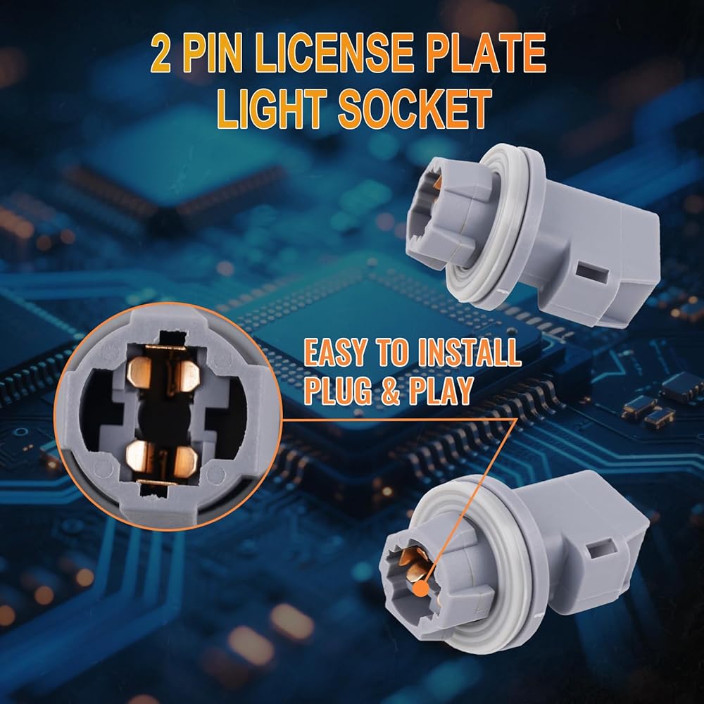 مواد متقدمة: مقبسان لمصباح لوحة الترخيص، مما يوفر لك المكونات الضرورية لاستبدال المقابس المعيبة أو التالفة. يتم استخدام مواد بلاستيكية متقدمة، وهي مقاومة لدرجات الحرارة العالية، ولا تتشوه، ولا تصدأ بسهولة، ولها موصلية جيدة، والتوصيل والتشغيل، ولا تحتاج إلى إعادة الأسلاك.