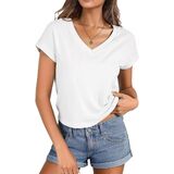 تصميم بسيط: يتميز هذا التي شيرت الأساسي الفضفاض بأكمام قصيرة ورقبة على شكل حرف V كلاسيكية، وبتصميم قصير فضفاض في كل مكان للحصول على مظهر ترفيهي وعصري. مثالي للملابس الصيفية وملابس العمل الكاجوال. تحديث مثالي لقميصك اليومي