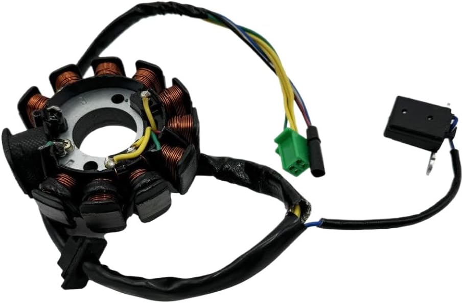 Ignition Stator Magneto 11 Pole 6 Coil for GY6 125 150cc Moped Scooter ATV Roketa This ignition stator magneto is designed for use with GY6 125cc and 150cc engine platforms commonly found in , mopeds, and ATVs.It features an 11 pole 6 coil configuration to support electrical output for ignition and systems.The unit is built to fit models requiring a direct replacement stator with matching specifications.It integrates into the engine's flywheel assembly and works in conjunction with the and ignition coil to generate spark for engine.Suitable for use in Roketa and similar vehicles utilizing the GY6 engine architecture.Installation requires basic mechanical tools and familiarity with small engine components.