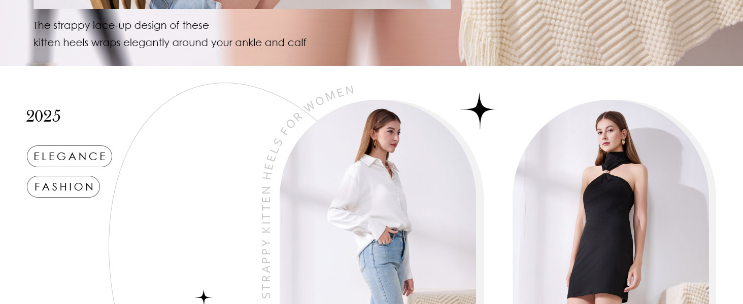 كعب بأربطة للنساء: تصميم بأشرطة بأربطة لهذه الأحذية ذات الكعب الصغير يلتف بشكل أنيق حول الكاحل والساق، مما يسمح بتعديل مرن للحصول على مظهر شخصي وجذاب وأنيق.
