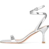 كعب قطط فضي للنساء: مع ارتفاع كعب منخفض مريح، توفر هذه الصنادل ذات الأربطة الأناقة وسهولة المشي - مثالية لساعات طويلة من الارتداء دون التضحية بالأناقة.