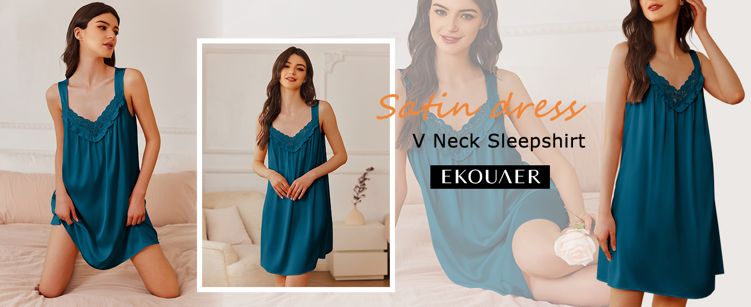 رقبة على شكل حرف V أنيقة: يتميز برقبة على شكل حرف V مثيرة مع تفاصيل من الدانتيل والكشكشة الرقيقة، يضيف فستان النوم للسيدات هذا لمسة من الأناقة والسحر إلى مجموعة ملابس النوم الخاصة بك. يعزز التصميم منحنياتك الأنثوية، مما يجعله أنيقًا وجذابًا