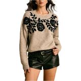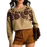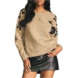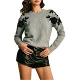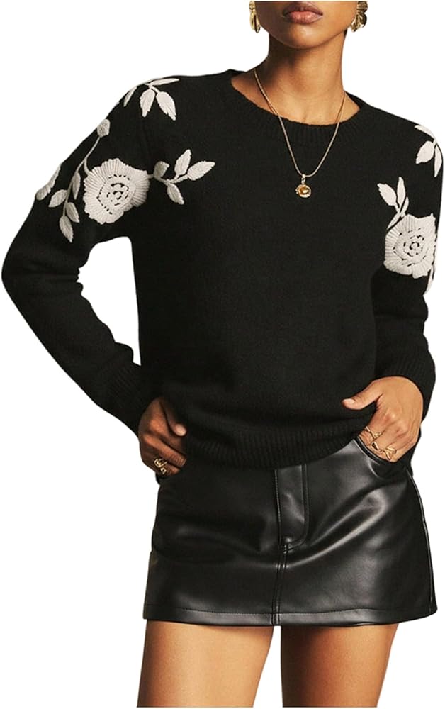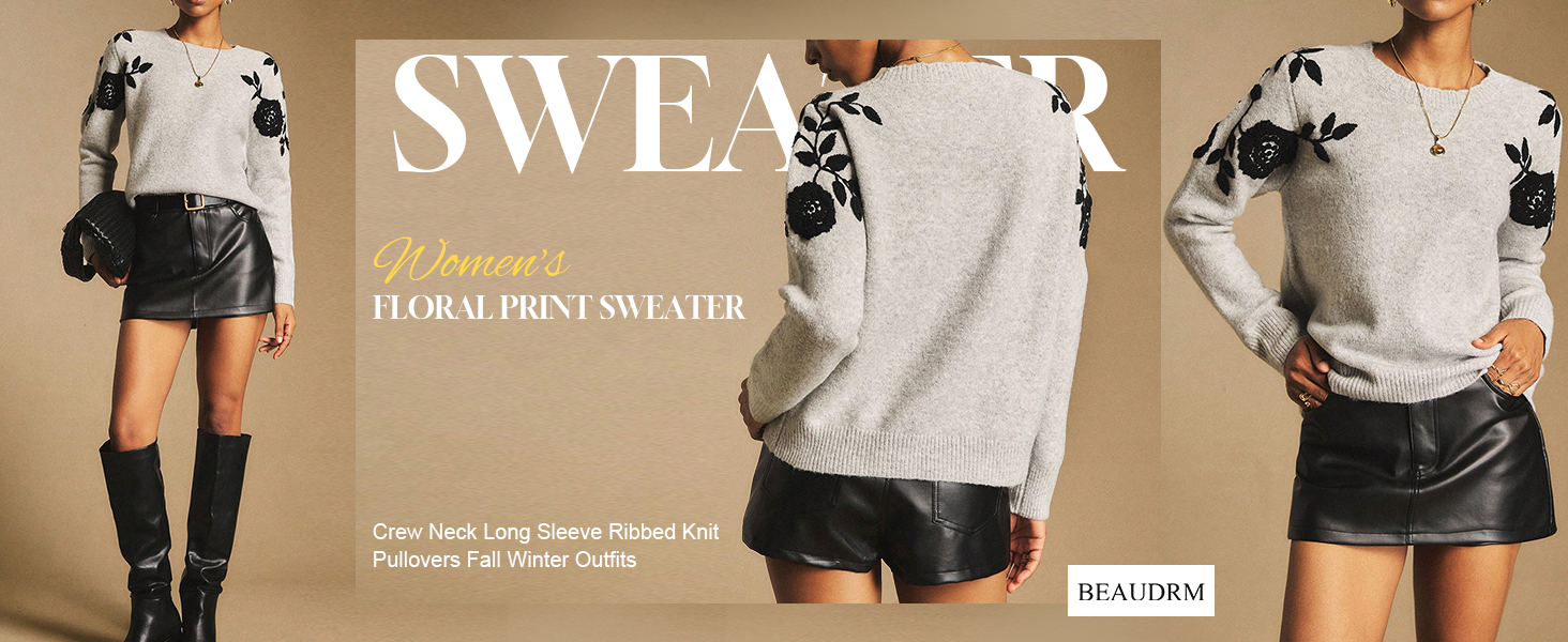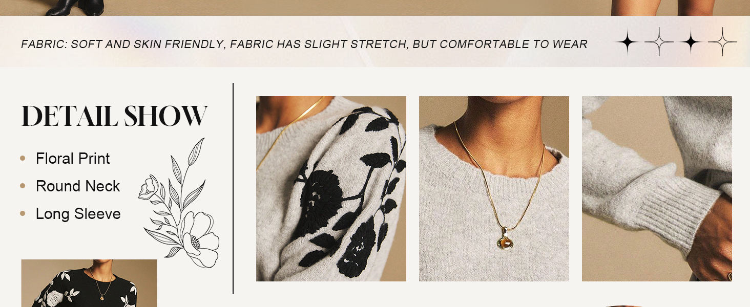 قمصان محبوكة، أزياء أوائل الخريف، قمصان للخروج، قمصان ربيعية وخريفية، طباعة زهور، رقبة دائرية، أكمام طويلة، خفيفة الوزن، طراز كاجوال