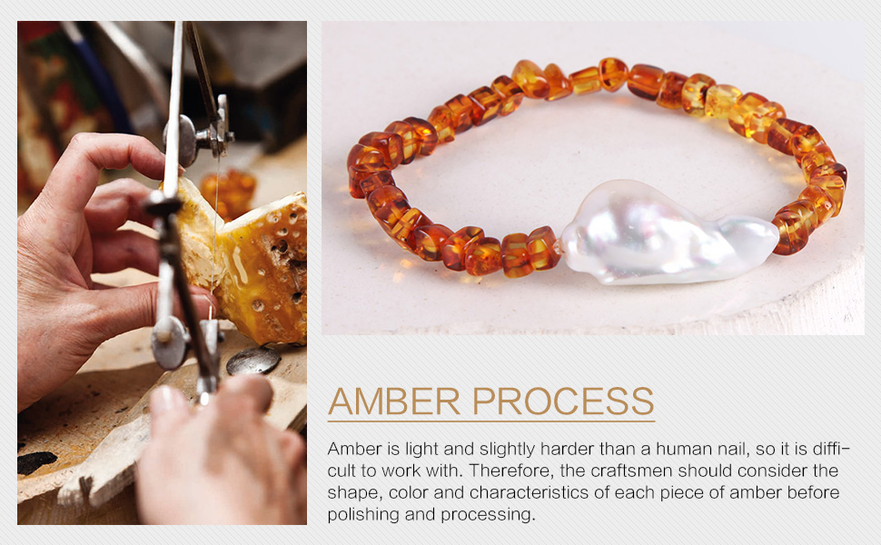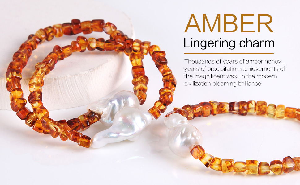 ❤ المقاس ❤ - طول 17.78 سم، يناسب معظم البالغين - الرجال والنساء؛ المادة: كهرماني، لؤلؤي.