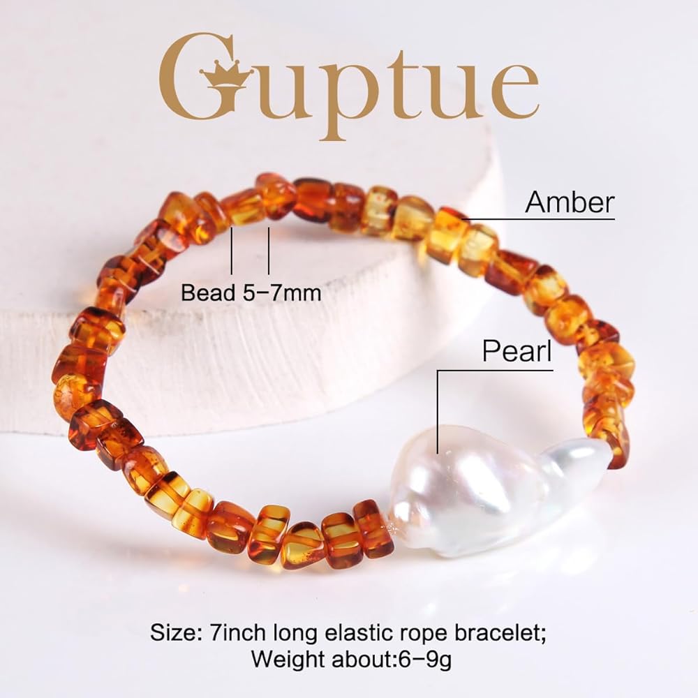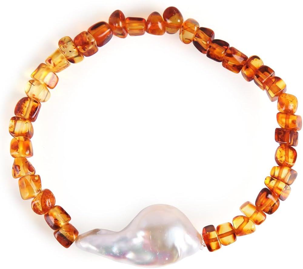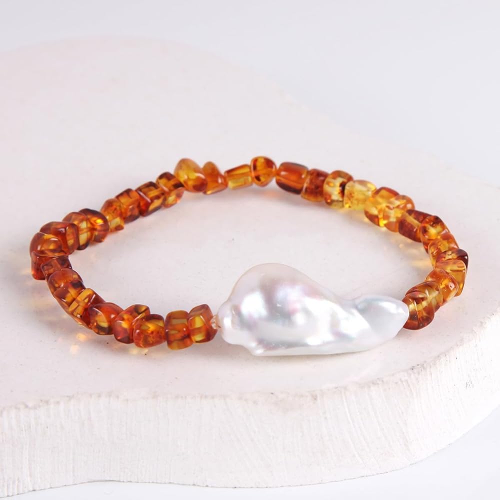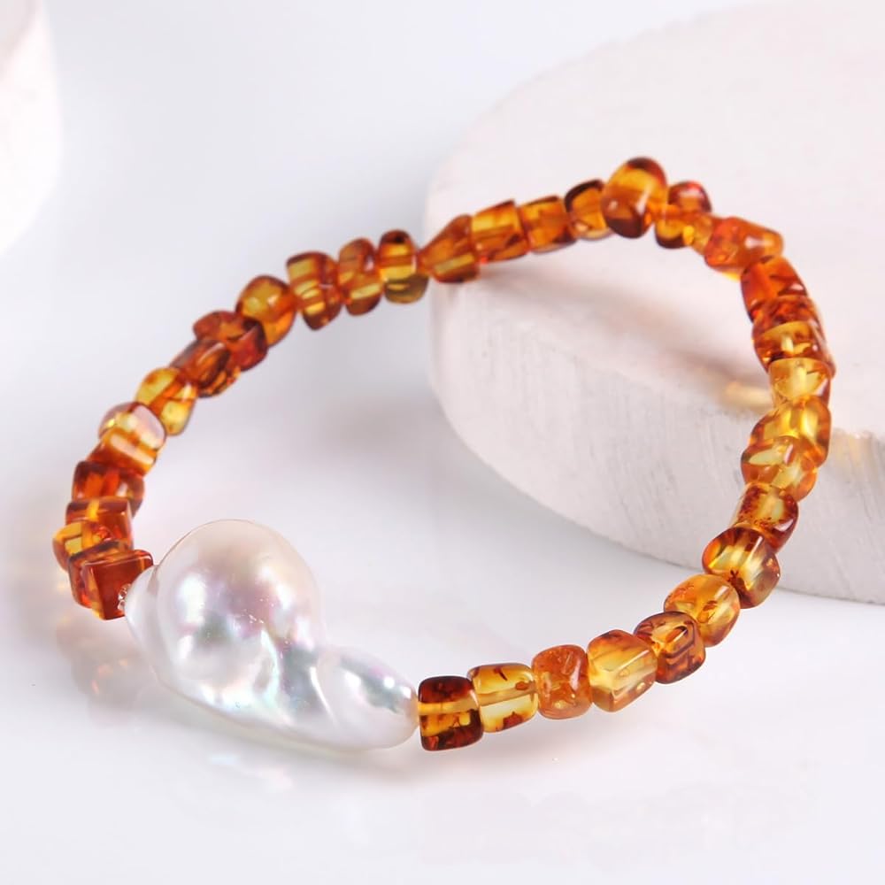 ❤ الطراز ❤ - سوار من اللؤلؤ للبالغين من كهرمان البلطيق
