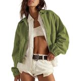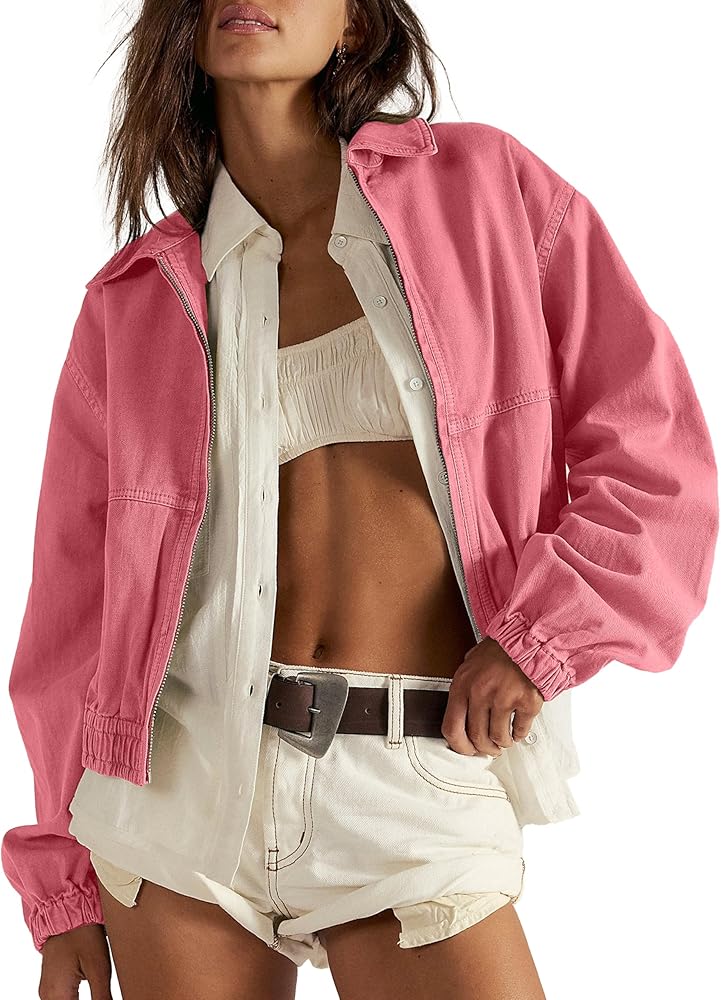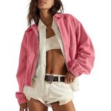 المواد: سترة نسائية قصيرة مصنوعة من نسيج ناعم وجيد التهوية، توفر هذه السترة تهوية وراحة استثنائية. يضمن ملمسه الناعم الذي يشبه الدنيم سهولة طوال اليوم، مما يجعله مثاليًا للارتداء في طبقات في الربيع والخريف وأيام الشتاء المعتدلة