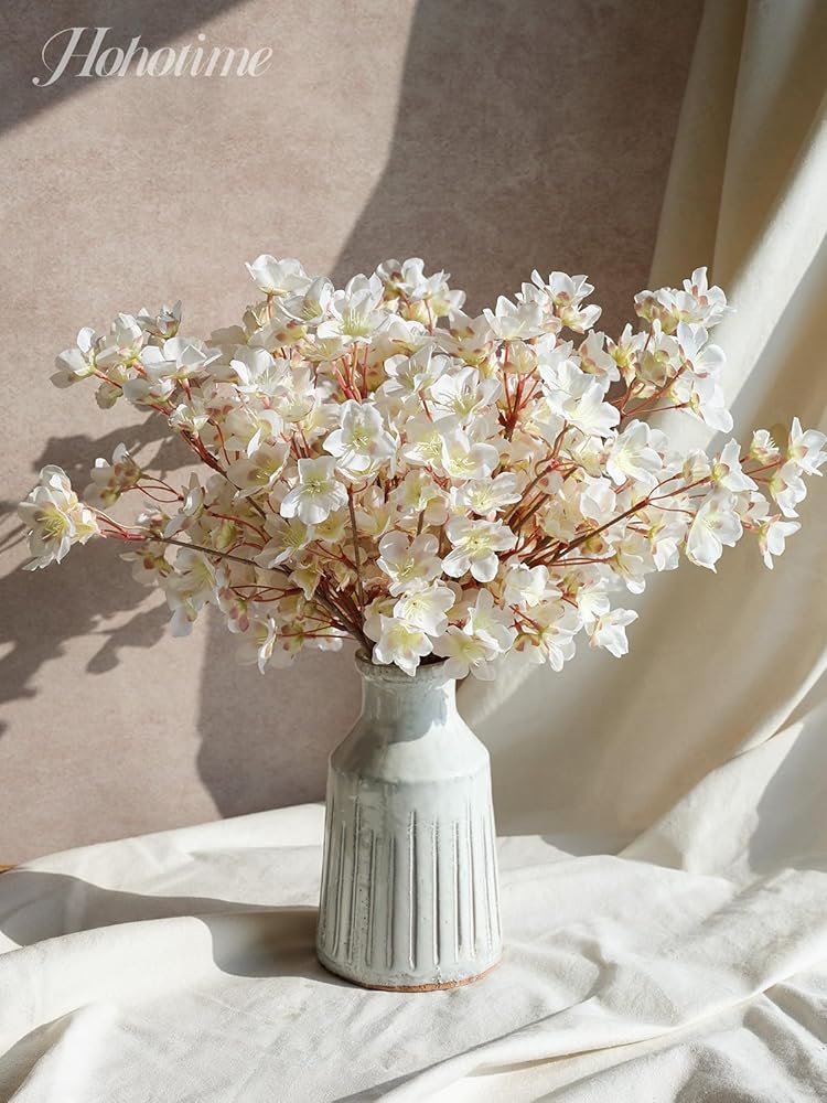 • NATURAL & ELEGANT LOOK: These faux cherry blossom flowers feature layered colors, thin and translucent petals, and naturally curved details, bringing a fresh spring atmosphere and elegant charm to any space—no watering or maintenance required.